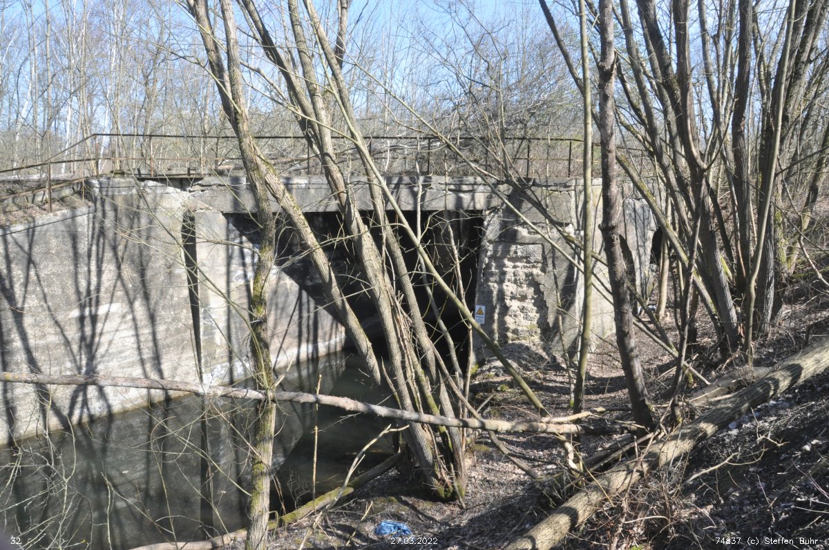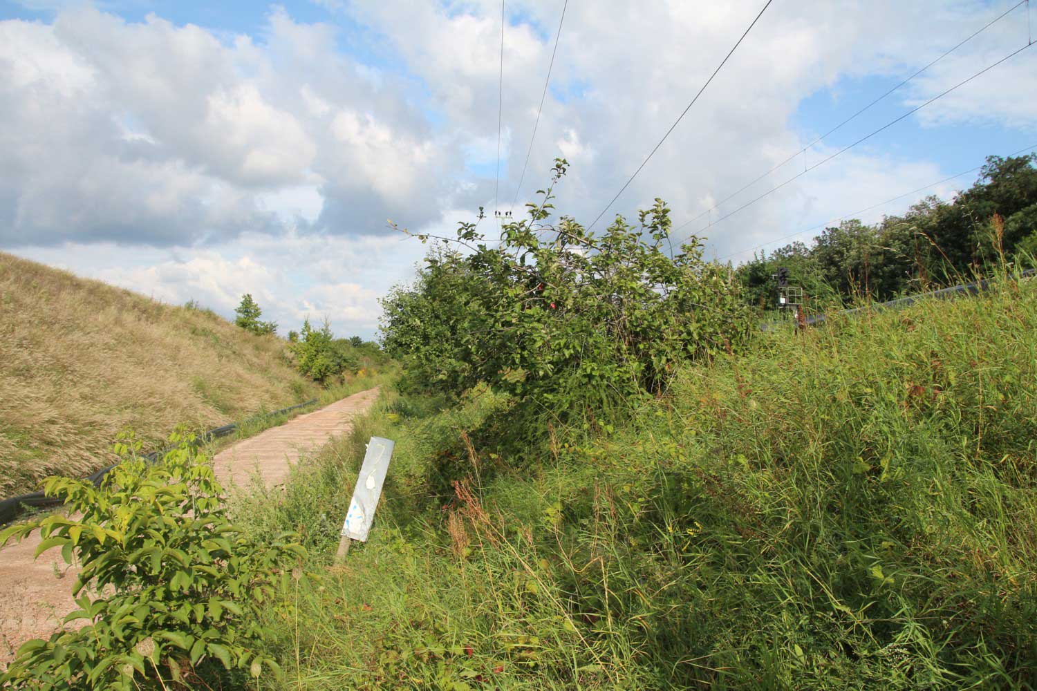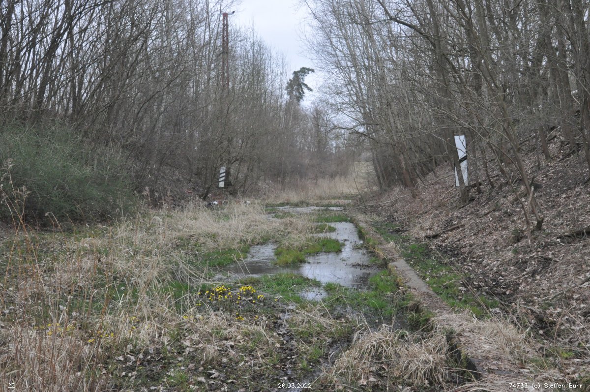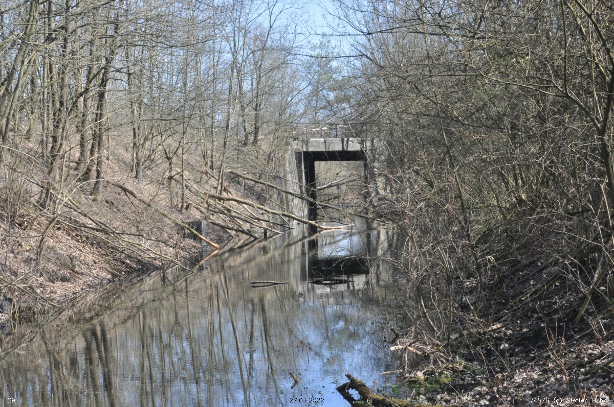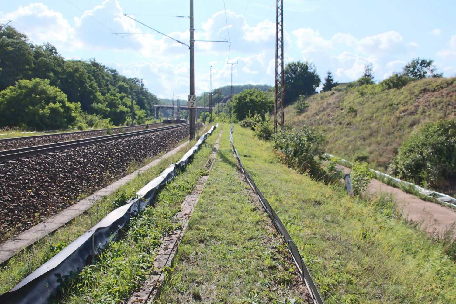 Links unten (trocken) lag das Gegenrichtungsgleis der Strecke
