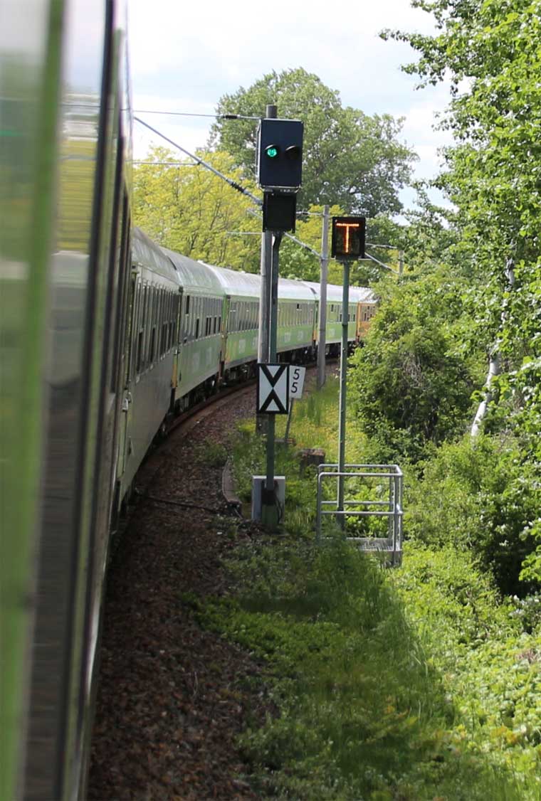 Das mittlere Gleis ist das Richtungsgleis der Strecke