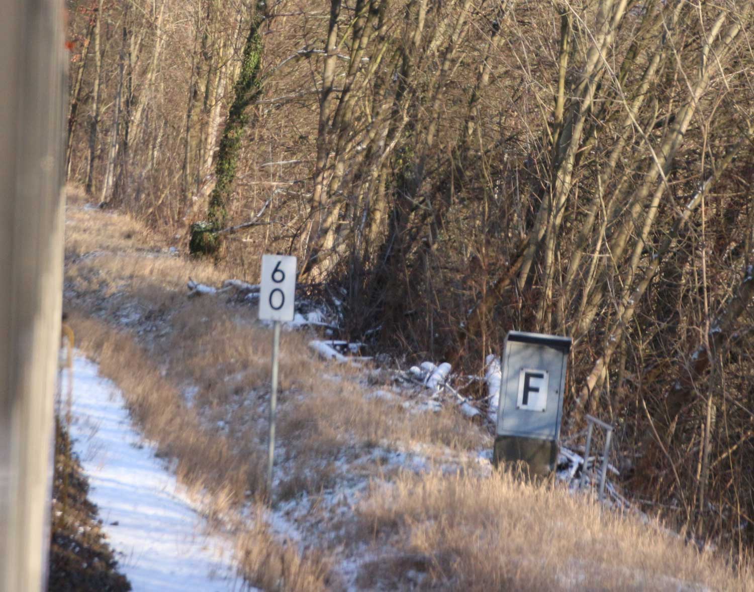km 4,4 (Tafel rechts) gehört zum Gegenrichtungsgleis der Strecke