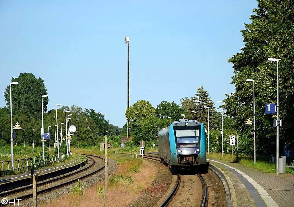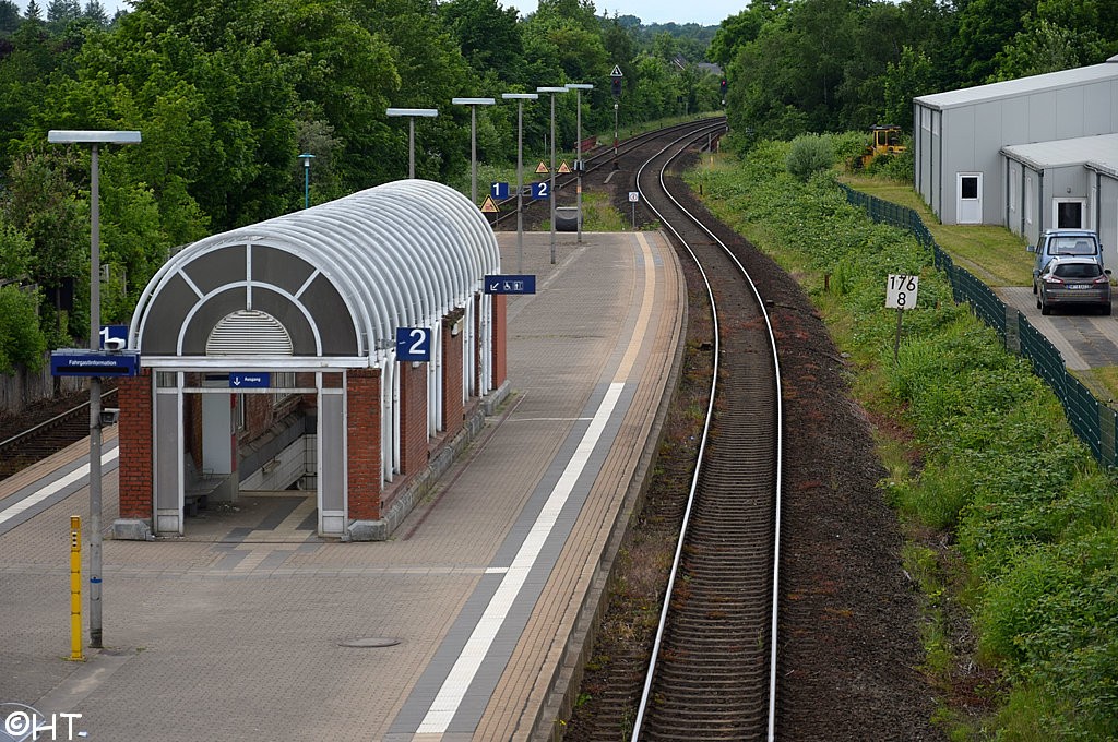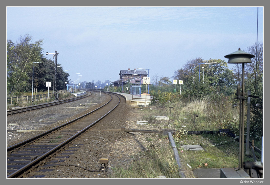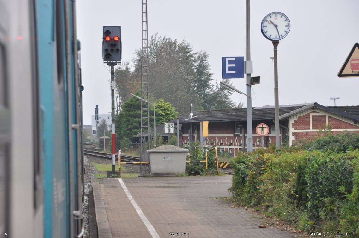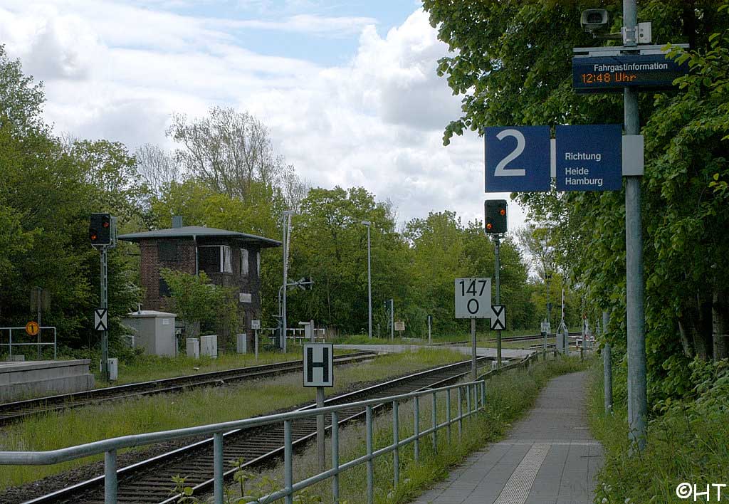 | Itzehoe | 64,92 | km 73,58 der Strecke (Hamburg-Altona 0,74) - Wrist 52,23 - Hohenlockstedt 62,06 - Streckenunterbrechung - Edendorf 71,03 - Itzehoe 73,58 |