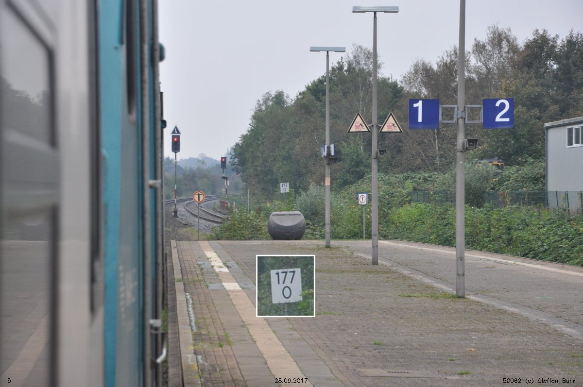 km 236,8 und km 237,0 in Westerland (Sylt) - Blick Richtung Streckenende