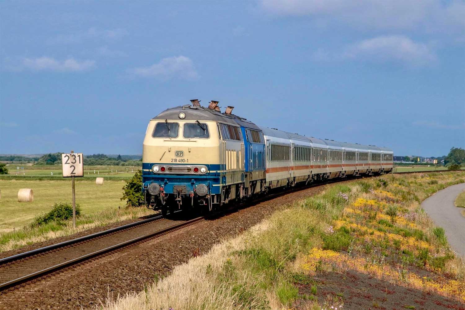 218 490 und 218 054 mit IC 2311 (Westerland - Stuttgart)