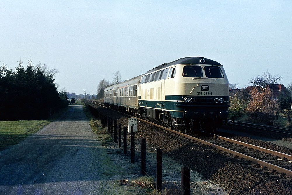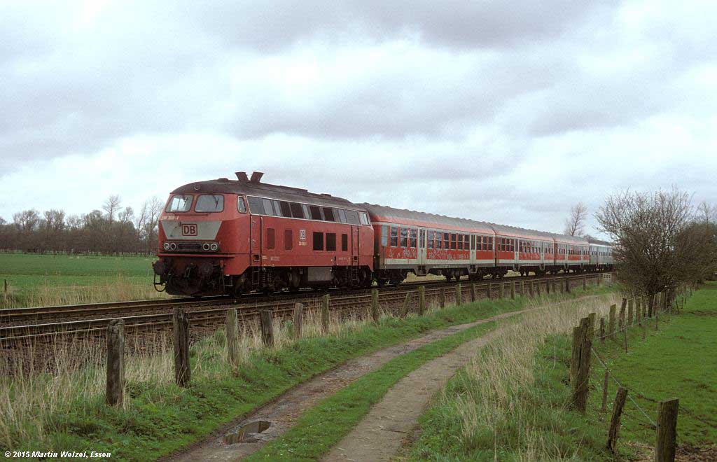 km 265,0 zwischen Otterndorf und Altenbruch - 218 254 mit dem RE 24468 (Hamburg-Cuxhaven)
