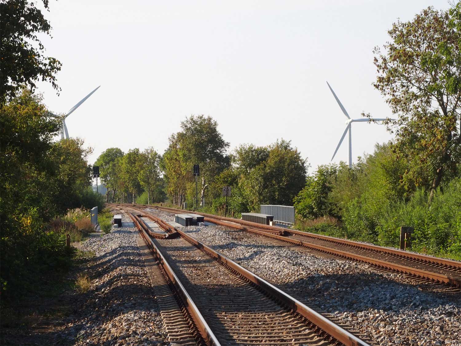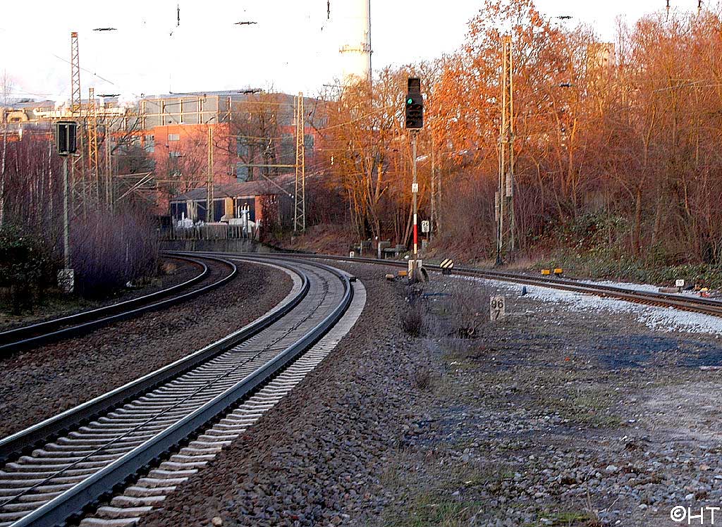 Nach links verlaufen die beiden Gleise der Strecke