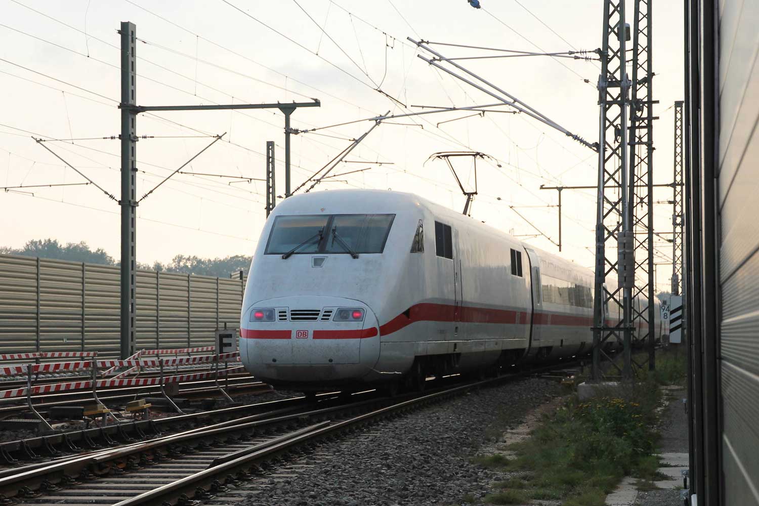 Im Hintergrund an der Schallschutzwand verläuft die Strecke