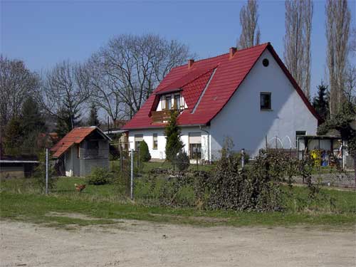 Thamsbrück Dieses Haus steht jetzt mitten auf dem ehemeligen Bahndamm (Oktober 2005) |