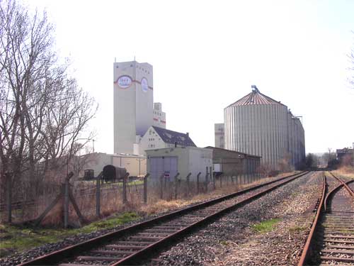 Blick Ri Bf Thamsbrück Rechts die ehemalige Konservenfabrik (Oktober 2005) |
