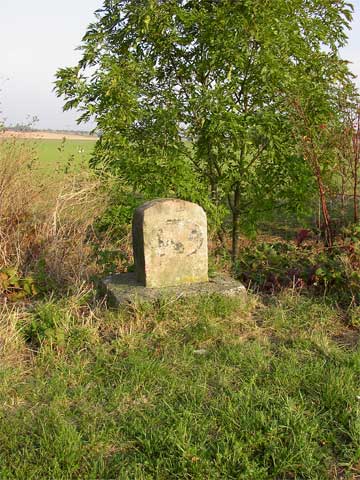 Stahlschwelle als Kilometerstein kurz vor der gesprengten Bruchstedter Brücke (April 2005) |