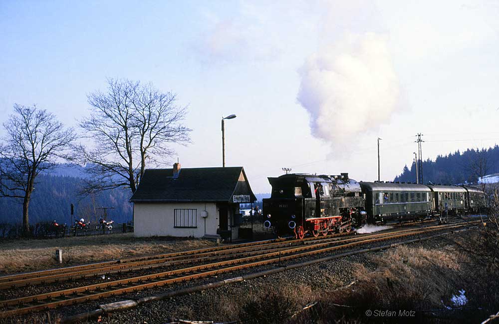 Neustadt (b Coburg) | 15,22 | km 30,24 der Strecke Ebersdorf (b Coburg) 0,0 - Grenze BRD/DDR 23,527 - Grenze DDR/BRD 27,313 - Neustadt (b Coburg) 30,24 |