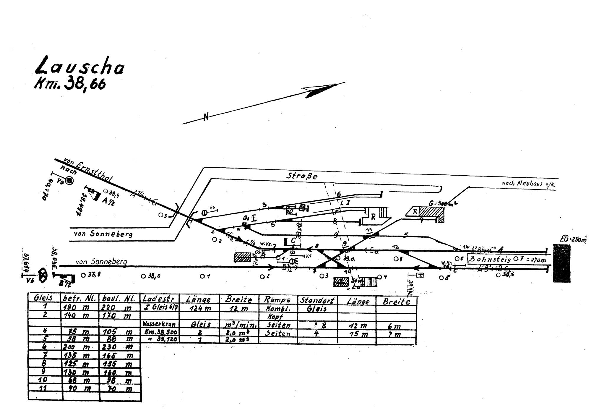 Kilometrirungsanfang (neu) | Lauscha (Thür) | Gleis 1 | 38,66 |