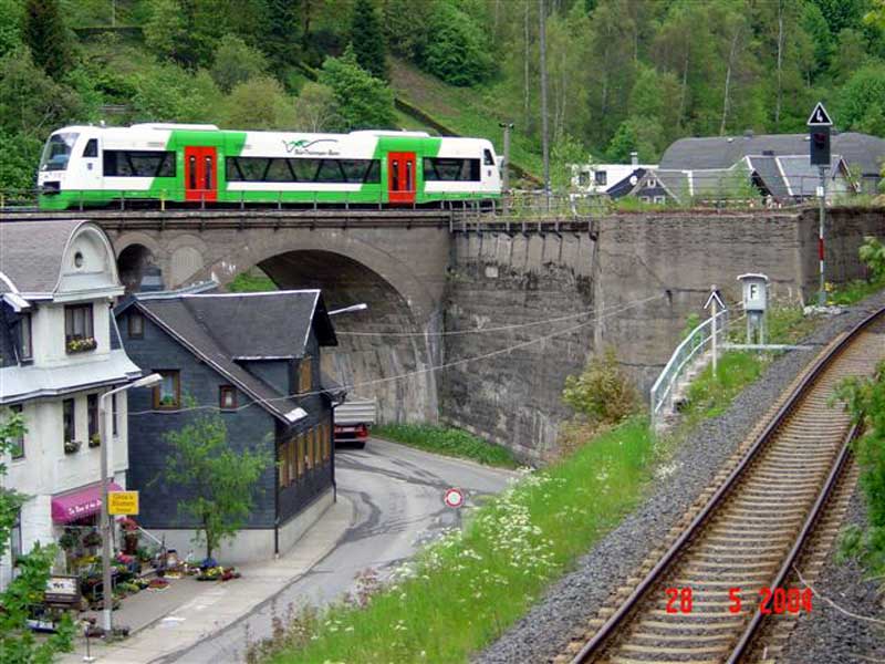 Gleicher Standort - Im Hintergrund fährt die STB Richtung Sonneberg Hbf