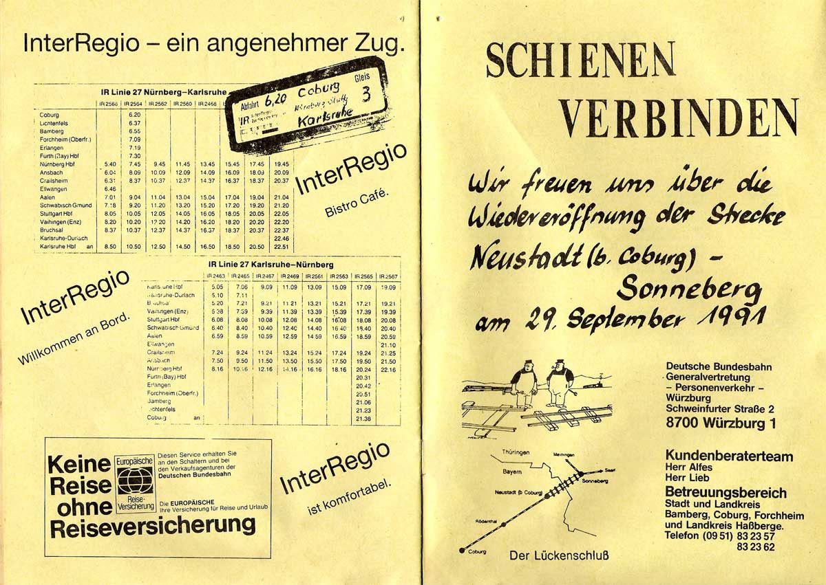 Lückenschluss Neustadt b. Coburg - Sonneberg (Thür)Hbf | 29.09.1991 |