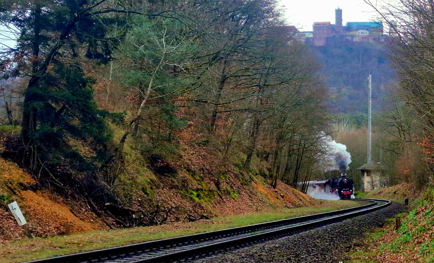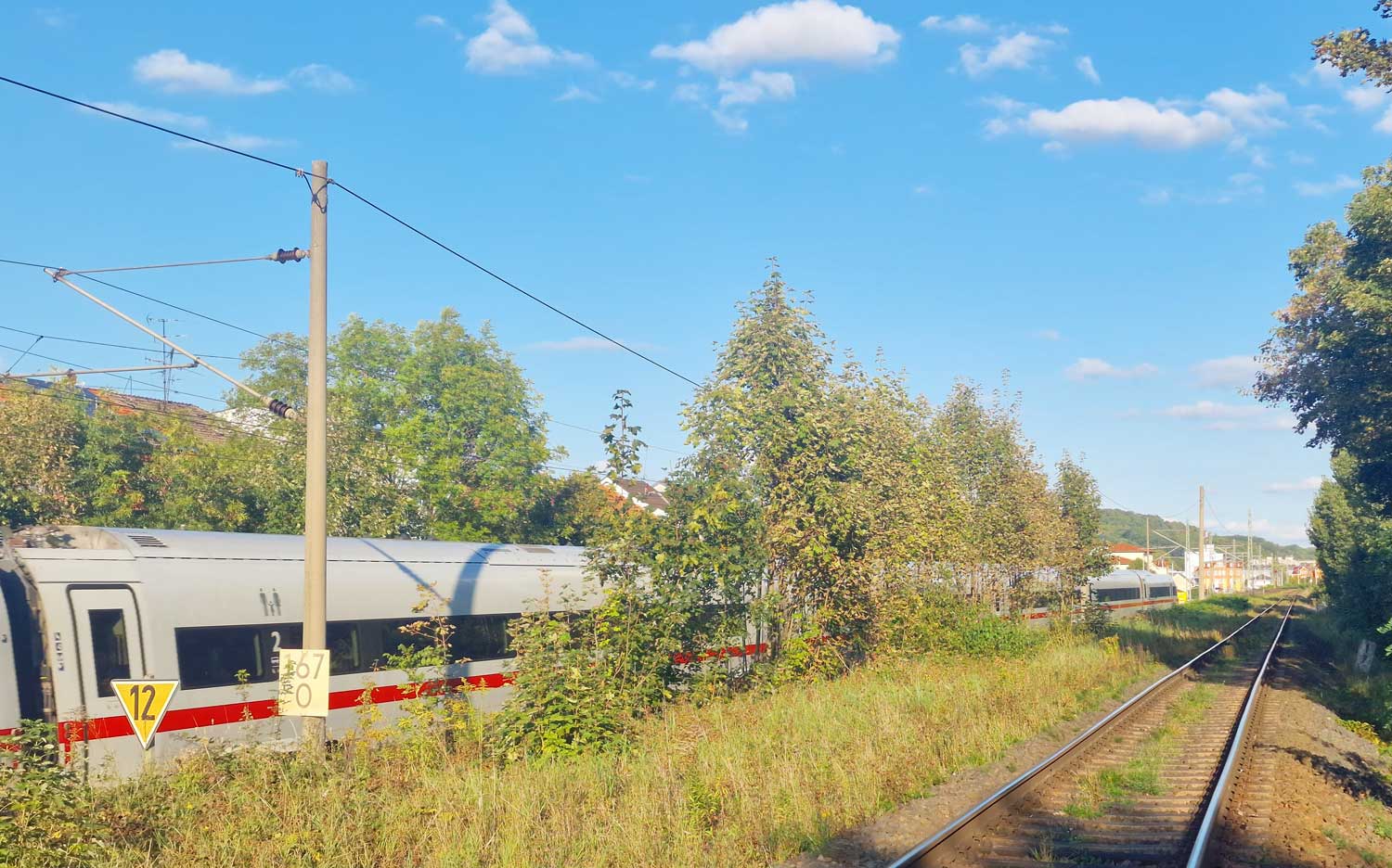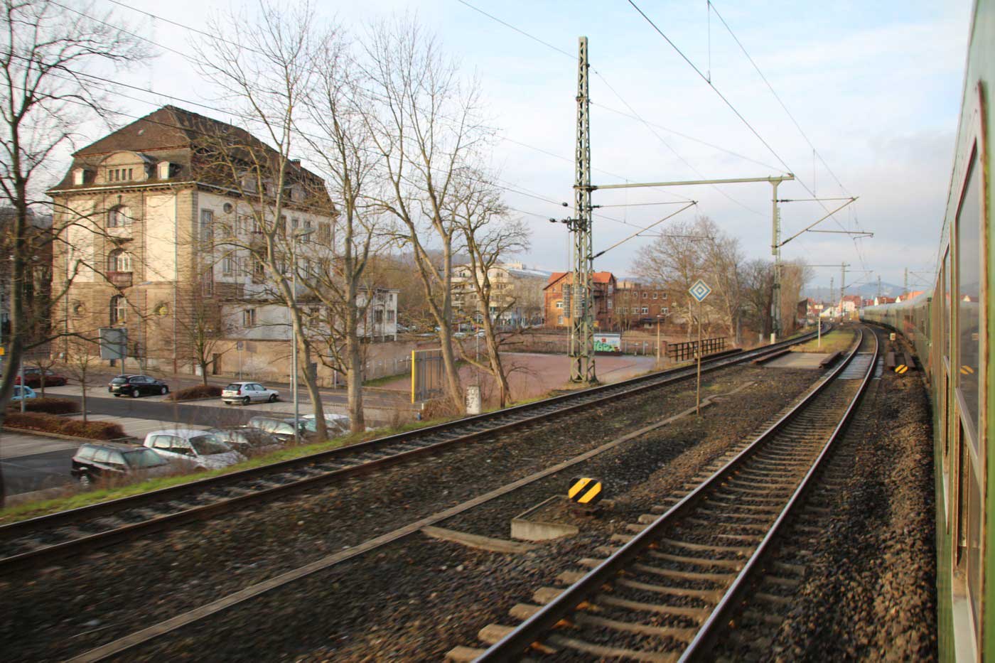 Rechts die Strecke Halle (Saale) Hbf - Erfurt Hbf - Eisenach - Bebra - Guntershausen