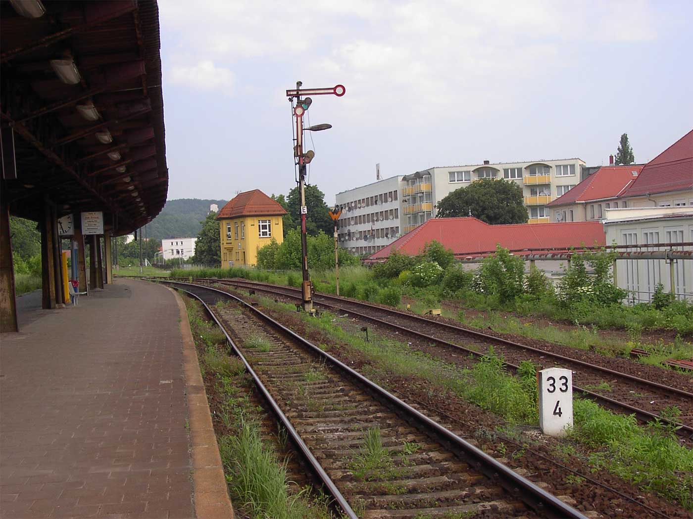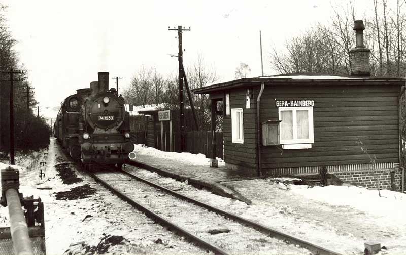 Gera Süd 33,48 km 74,60 der Strecke (Leipzig Hbf 0,0) - Leipzig-Leutzsch 6,69 - Zeitz 44,61 - Gera Hbf 72,81 - Saalfeld (Saale) 140,01 - Probstzella 164,99 - Grenze DDR/BRD 166,66 = 52,91 - (Hochstadt-Marktzeuln 0,0)