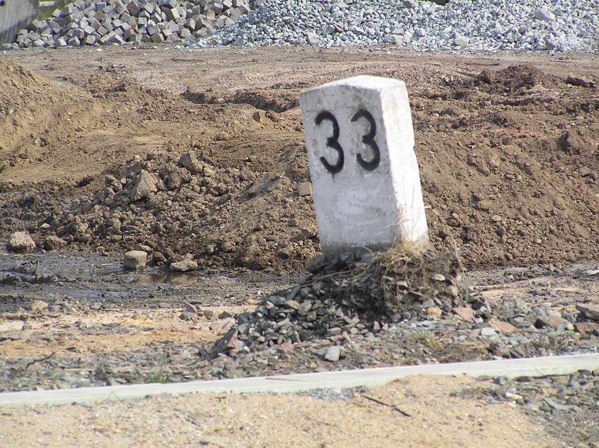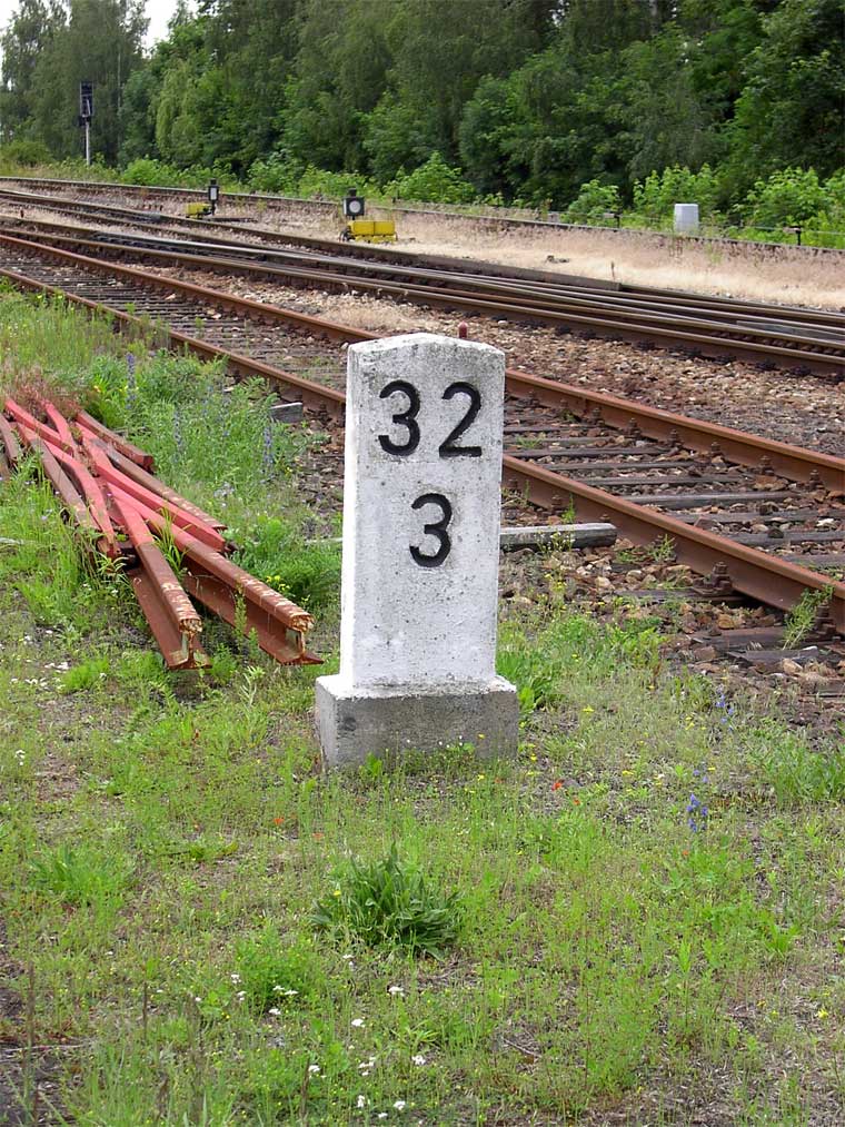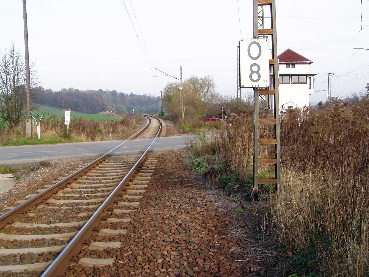 km 32,2 (Tafel und Stein) in Gera Süd (heute: Abzw Gera-Debschwitz) - Blick Richtung Gera