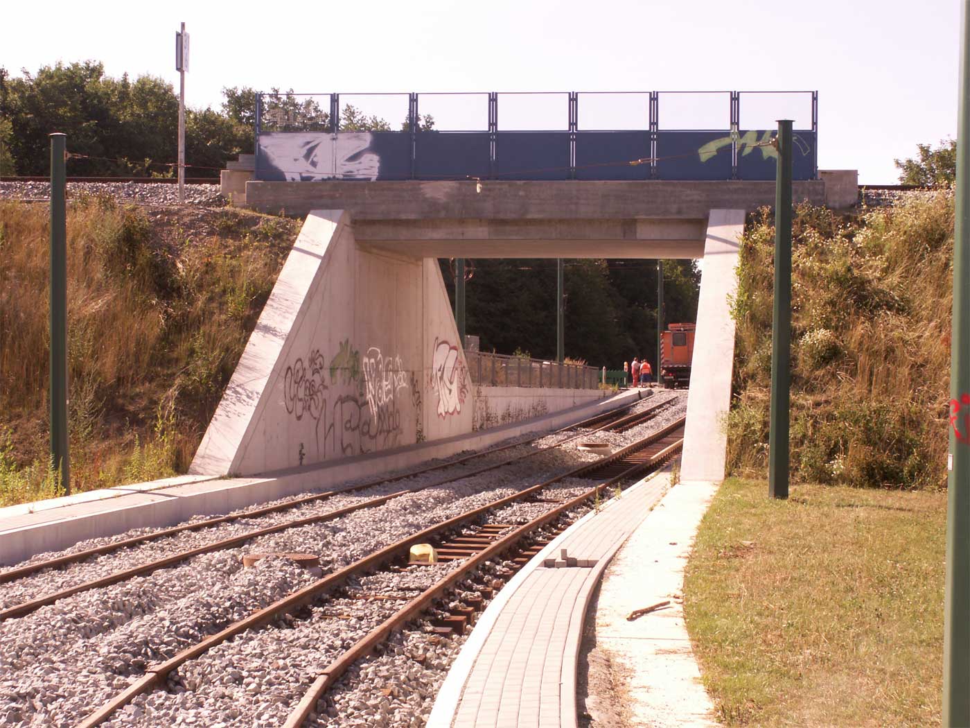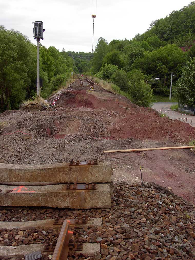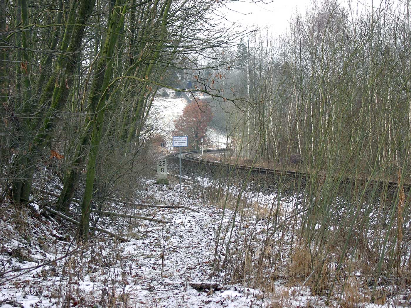 Hier kam die Strecke vor der Umverlegung von rechts heran.