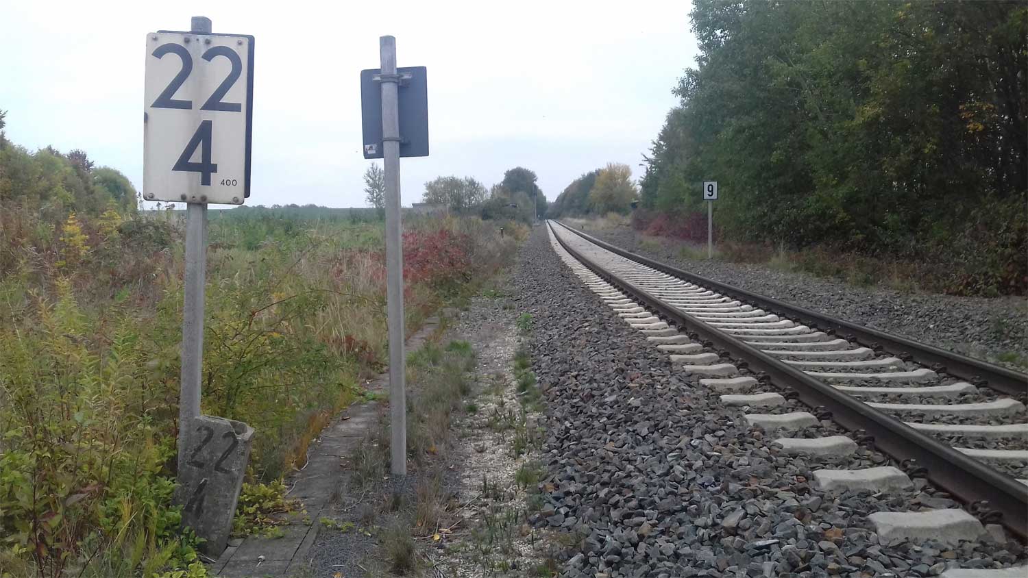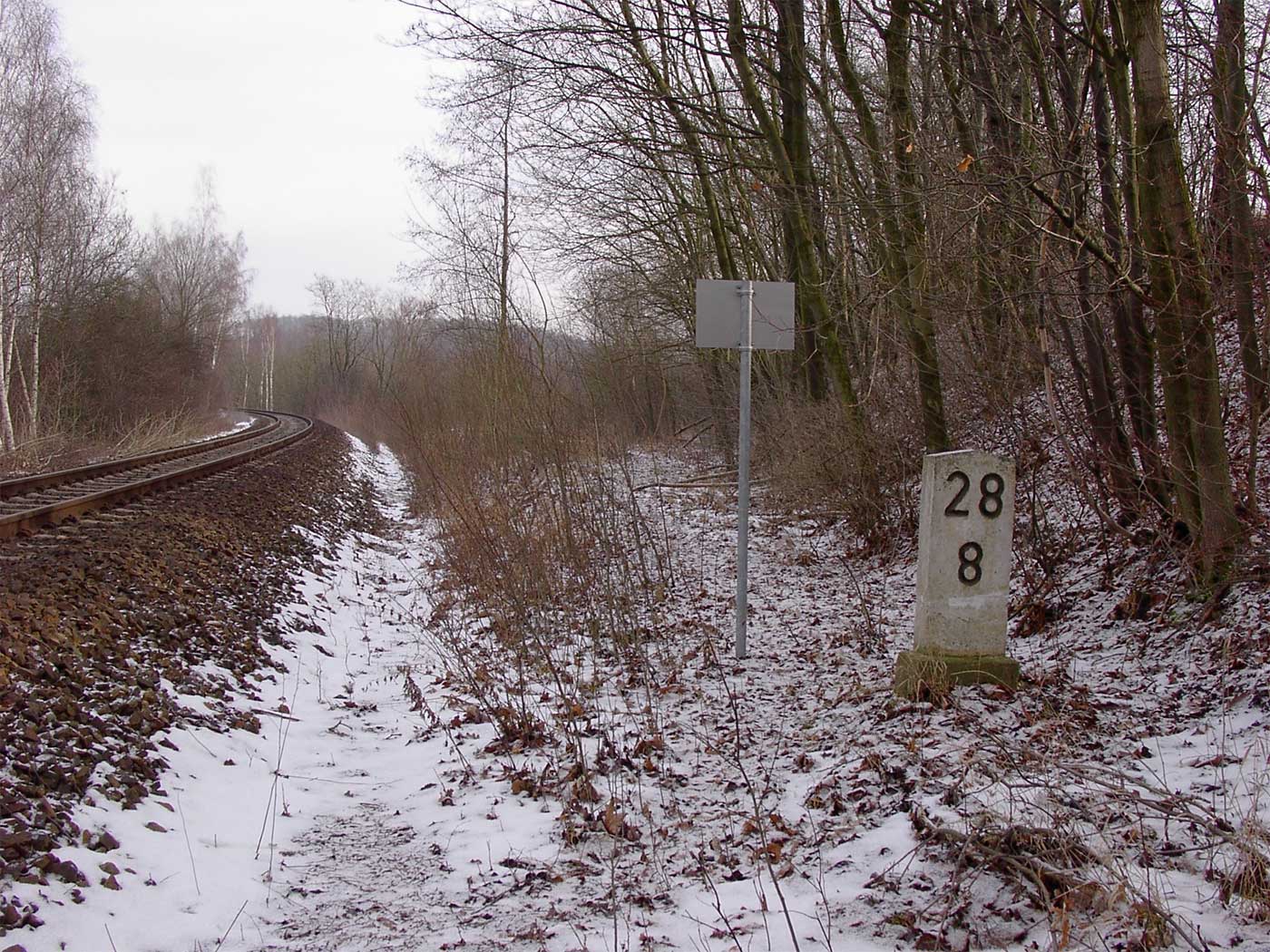 km 32,2 (Stein und Tafel) in Gera Süd (heute: Abzw Gera-Debschwitz) - Blick Richtung Gößnitz
