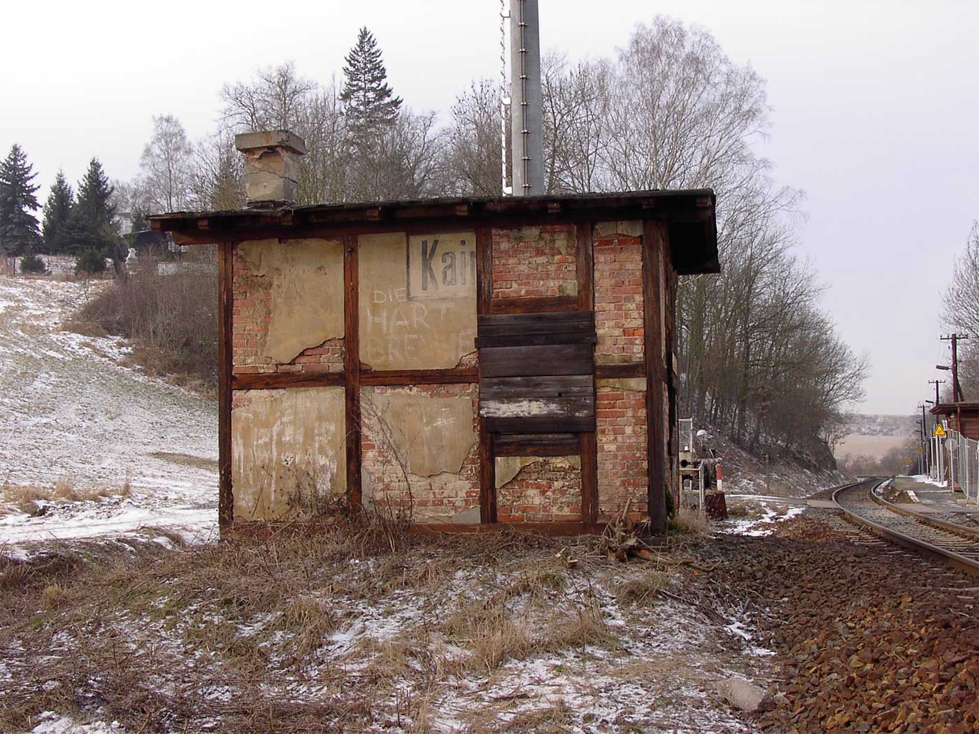 Raitzhain 22,2 km 25,40 der Strecke Streckenanfang Bf Kayna 0,0 - Kayna 0,8 - km 11,808 = km 19,550 - Großenstein (Kr Gera) 20,22 - Raitzhain 25,40