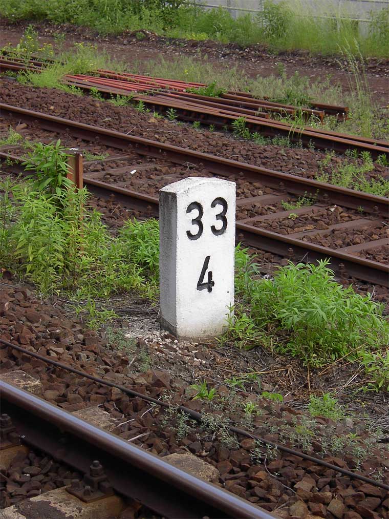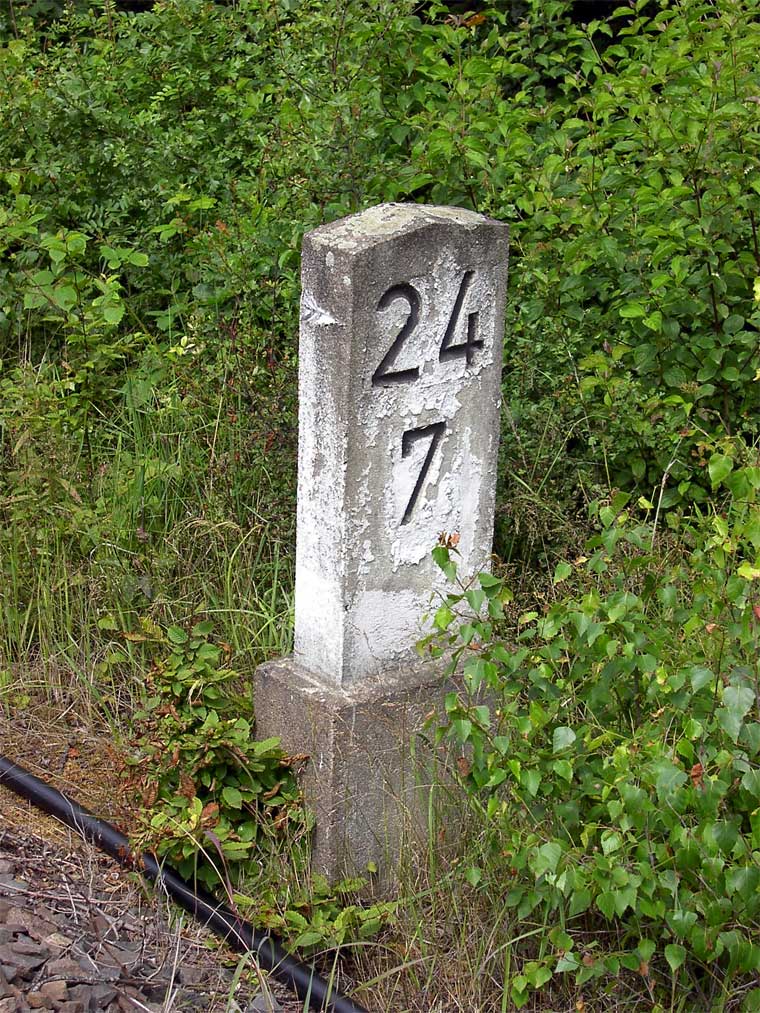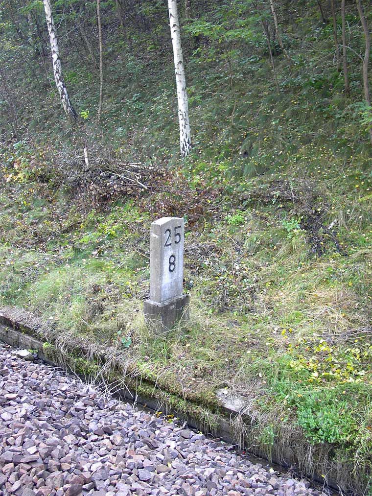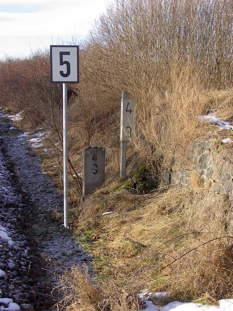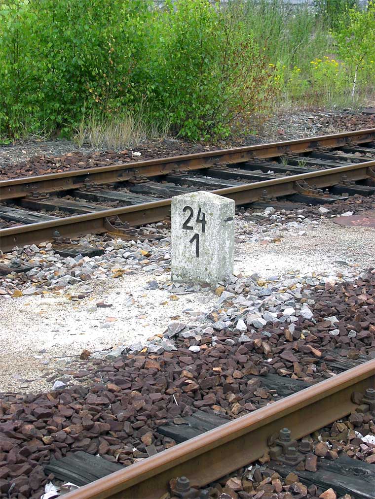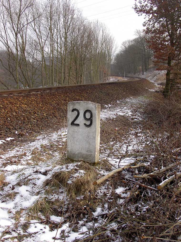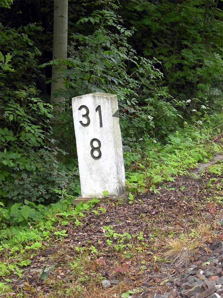 Rechts ein Stein der Strecke Gera Süd - Weischlitz