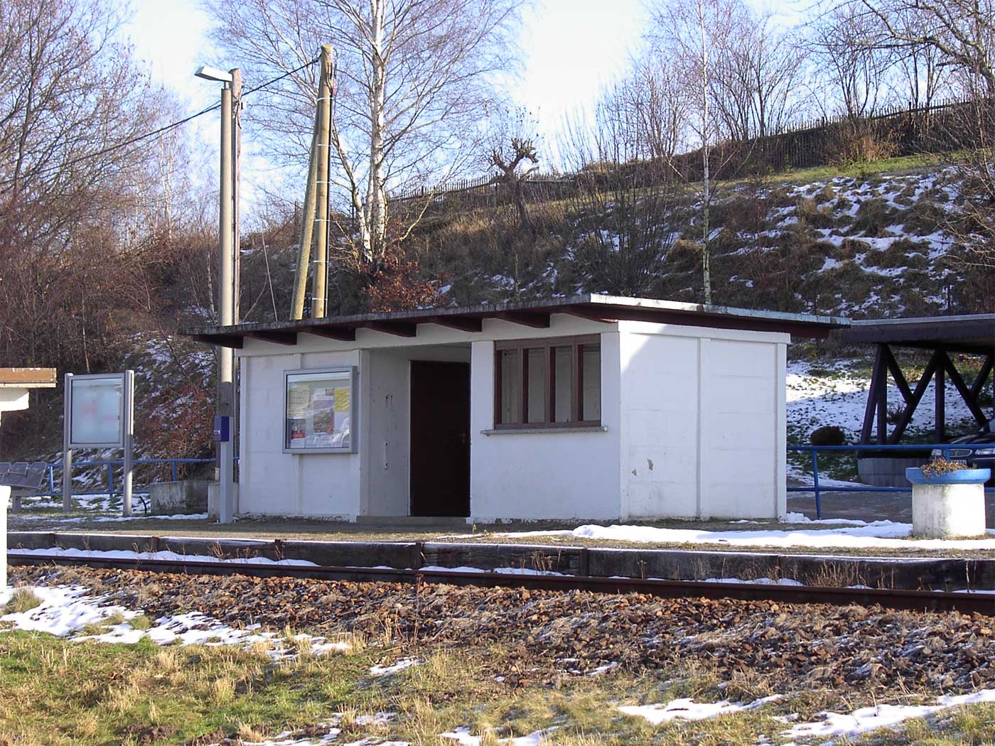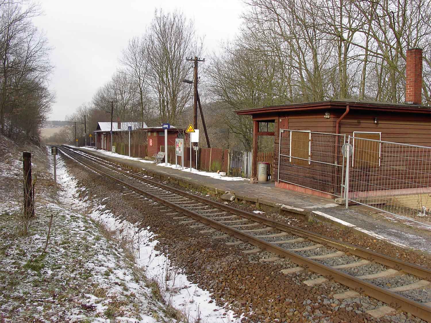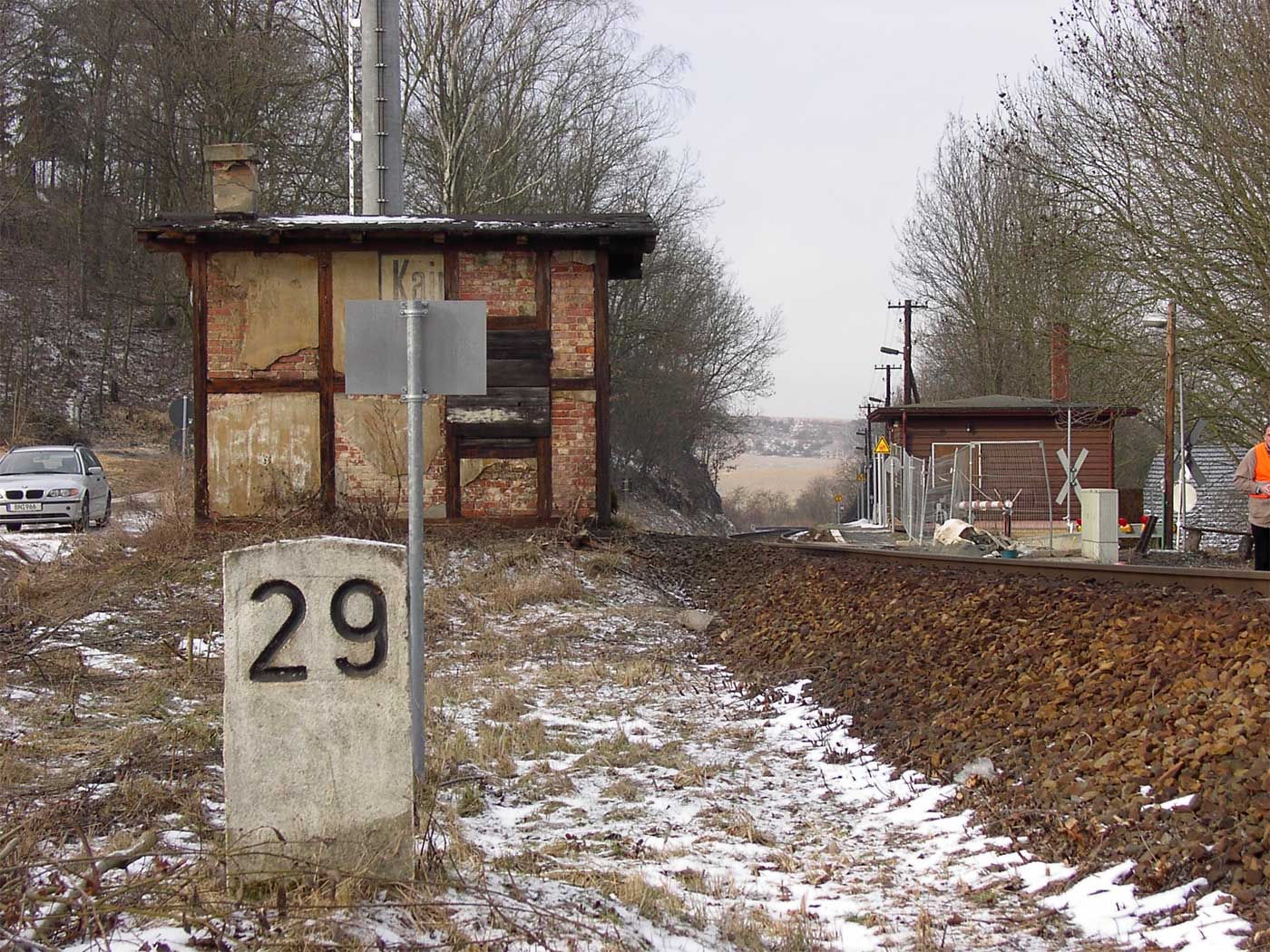 Raitzhain 22,51 km 25,44 der Strecke Streckenanfang Bf Kayna 0,0 - Kayna 0,8 - km 11,808 = km 19,550 - Großenstein (Kr Gera) 20,22 - Raitzhain 25,40