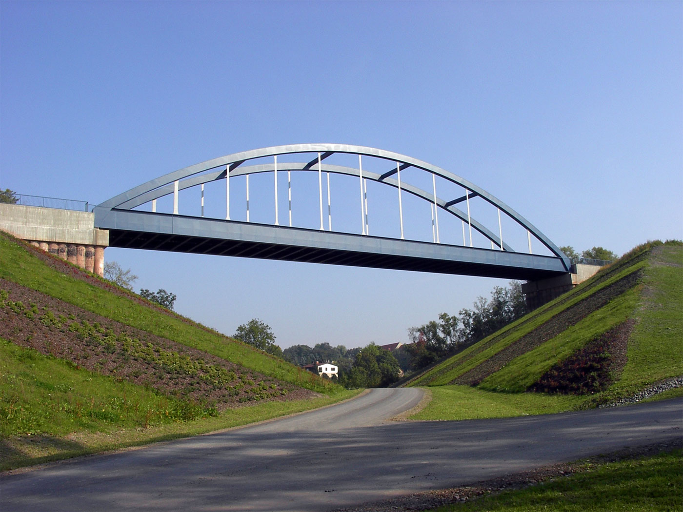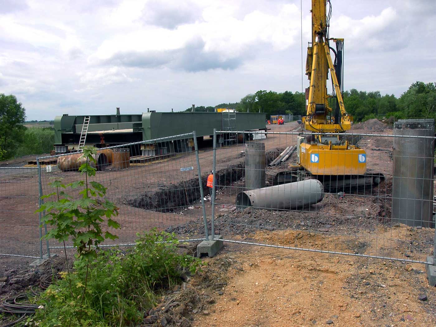 Links hinter den Büschen führte die Strecke vor der Umverlegung entlang.