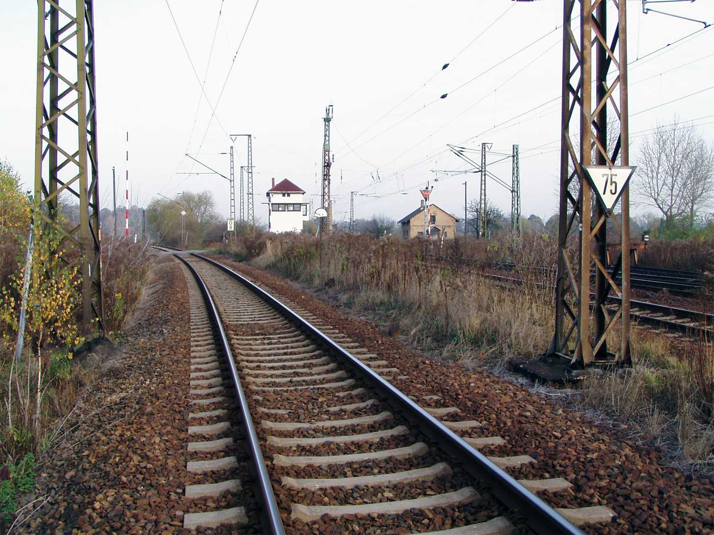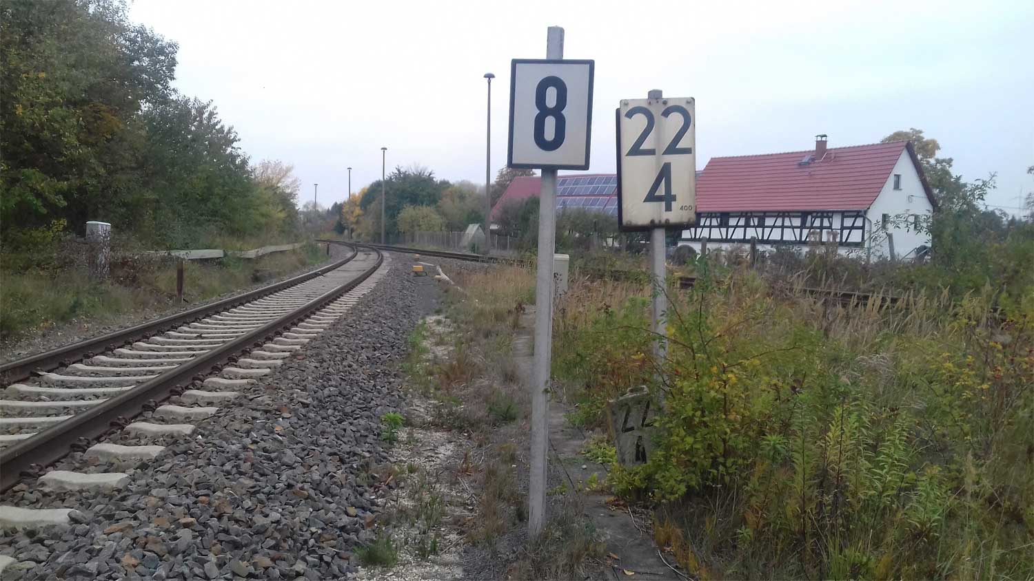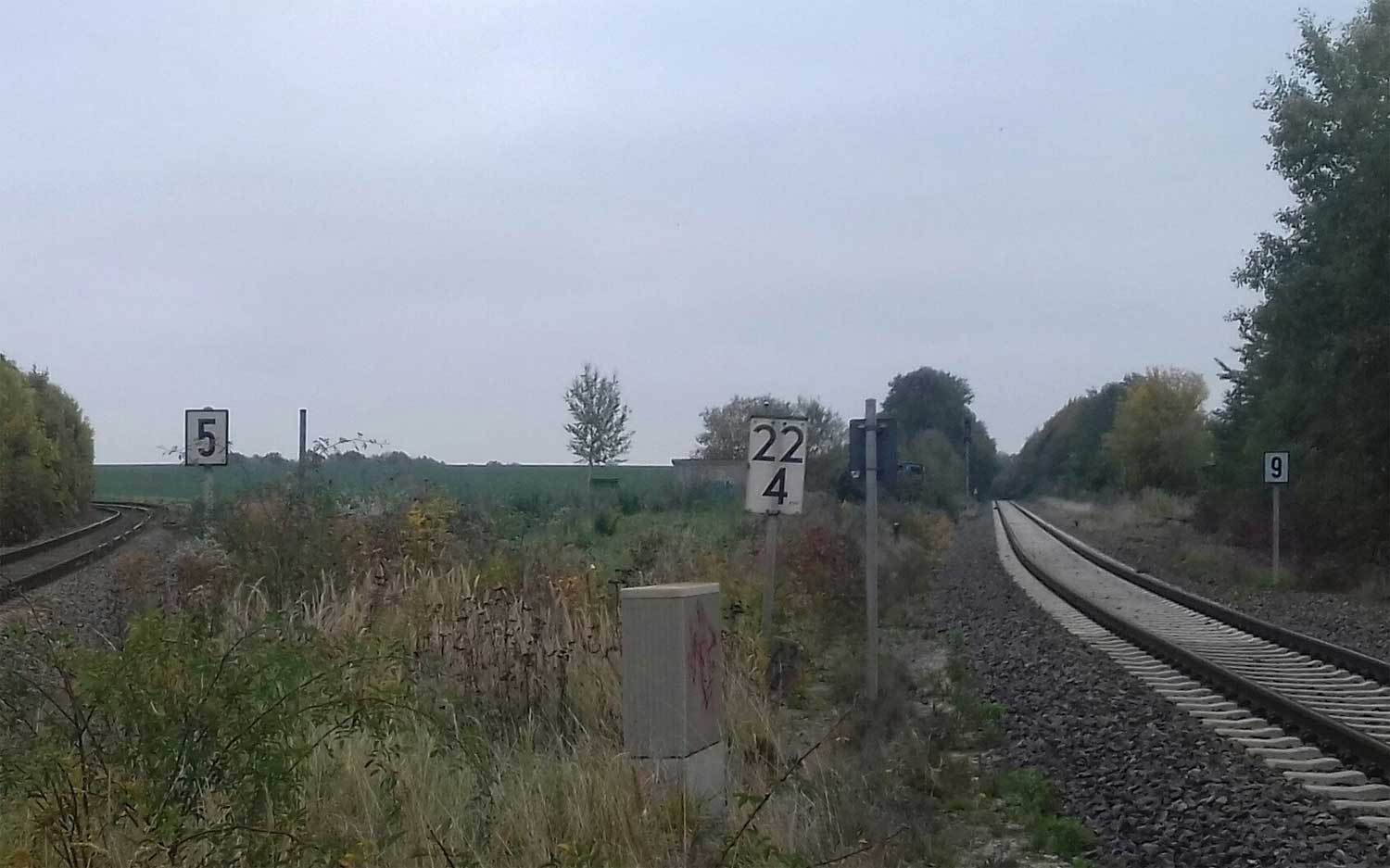 km 75,4 (links) gehört zur Strecke Leipzig-Leutzsch - Probstella