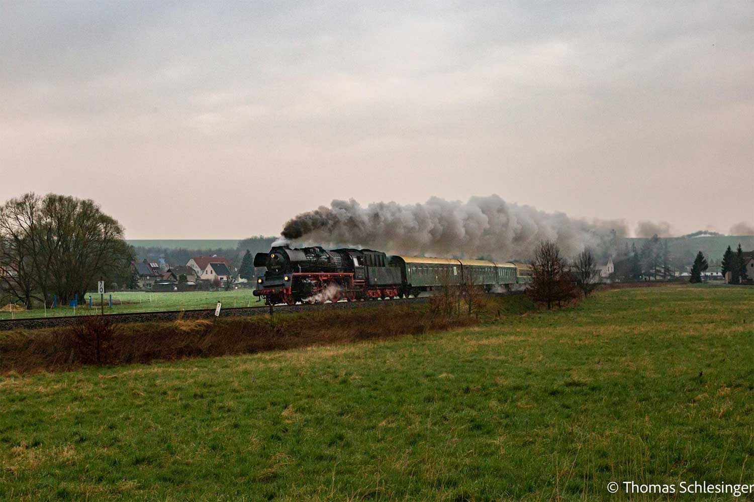 Sonderzug mit der 65 1049 am 13.03.2009 bei Ronneburg auf der Fahrt nach Gera