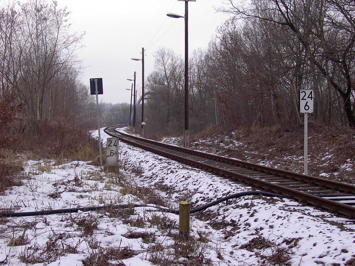 km 0,4 in Gößnitz - Blick Richtung Streckenanfang