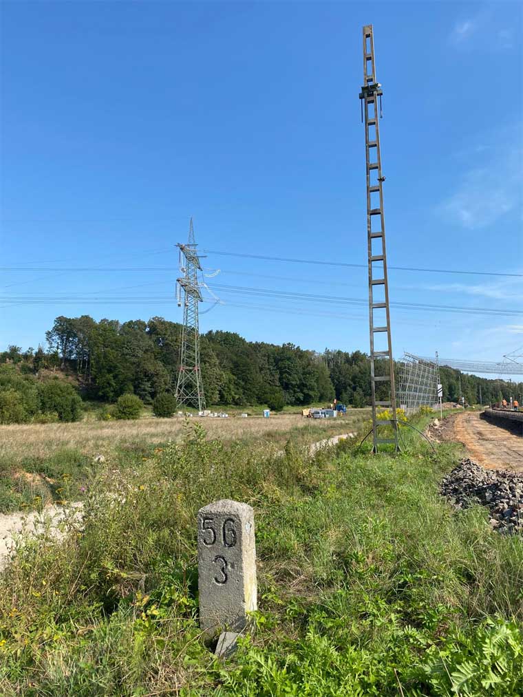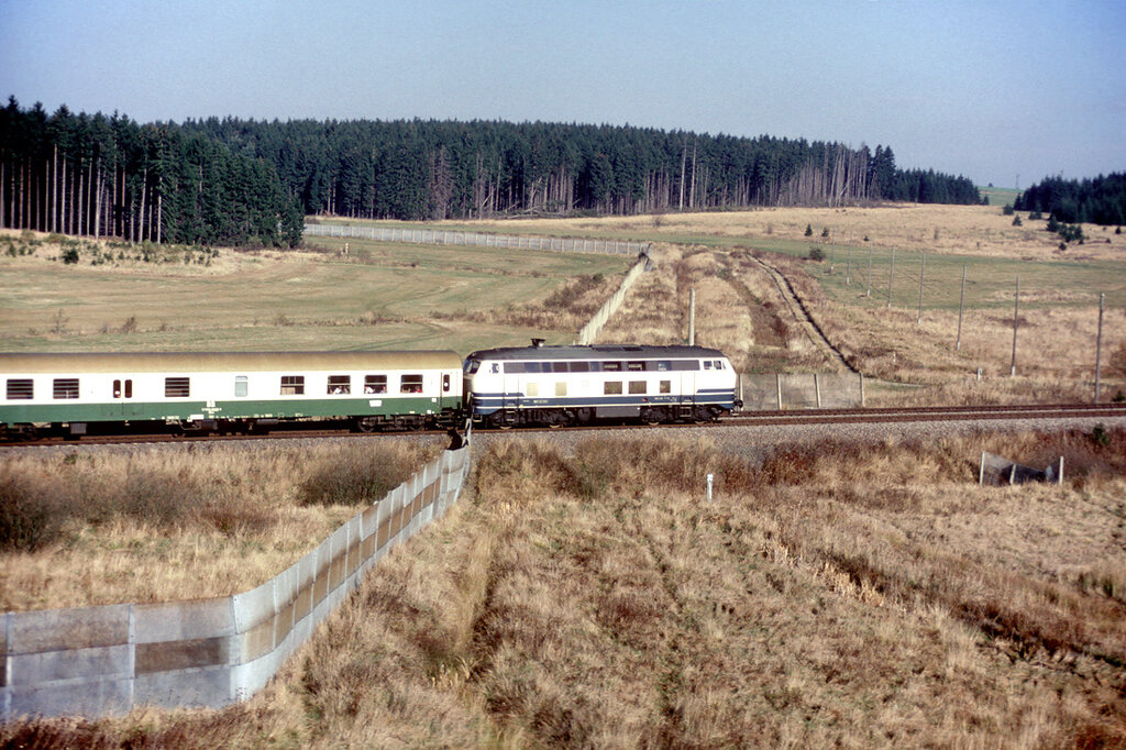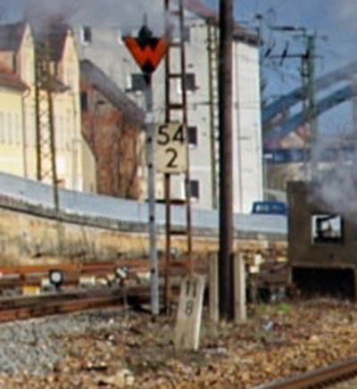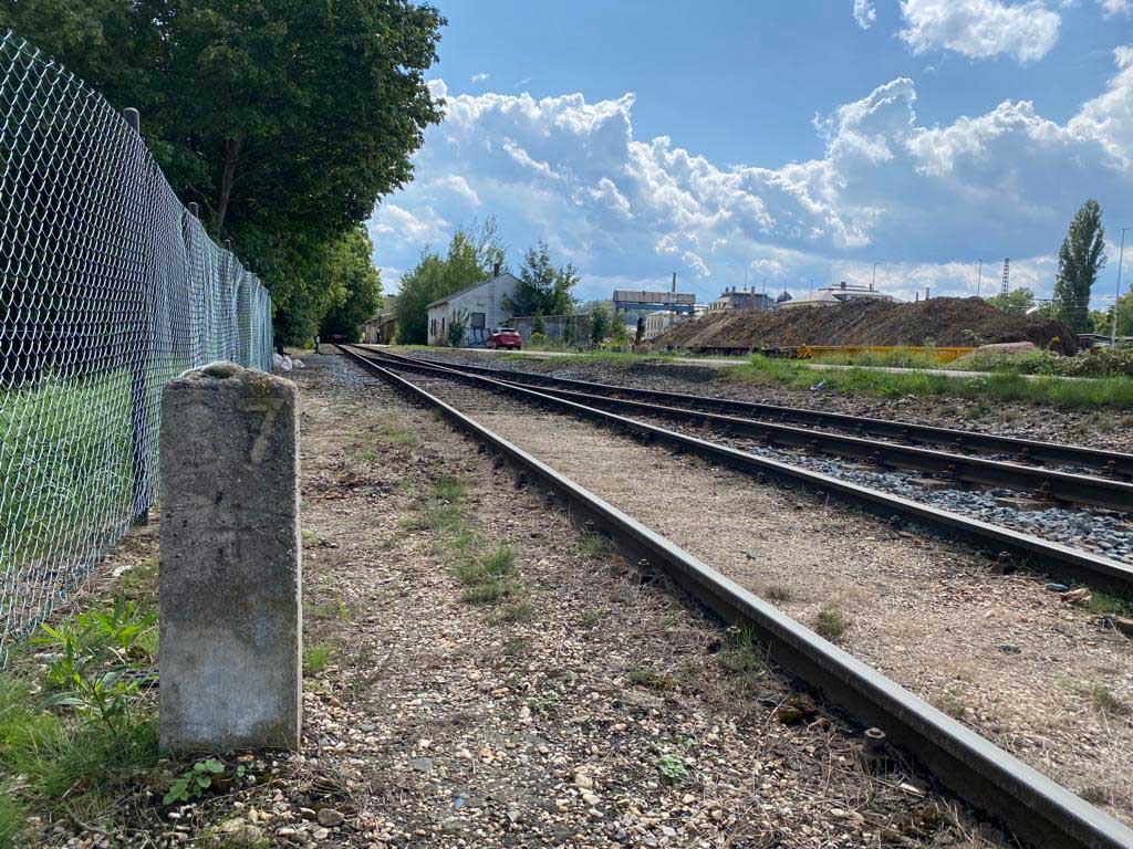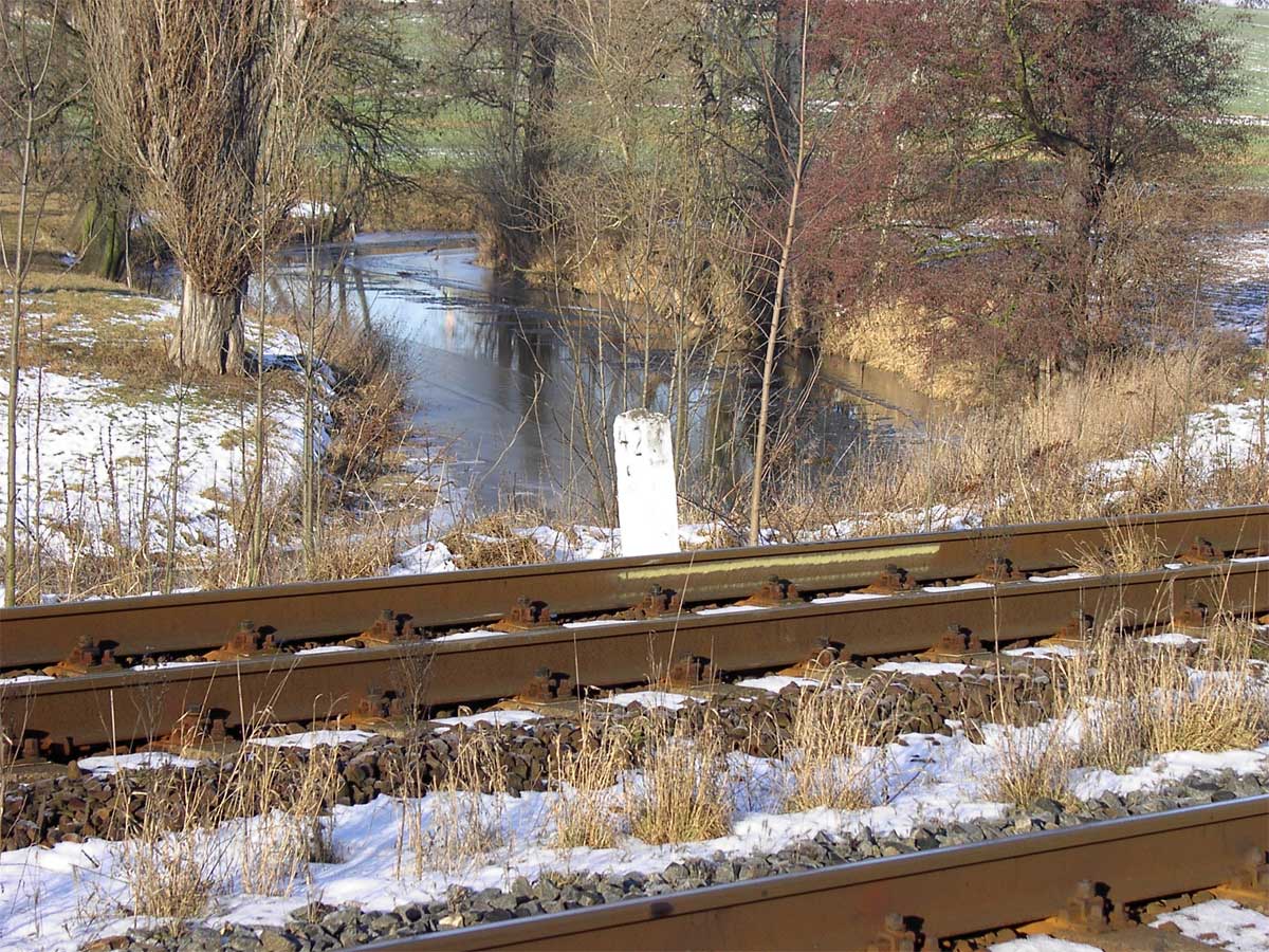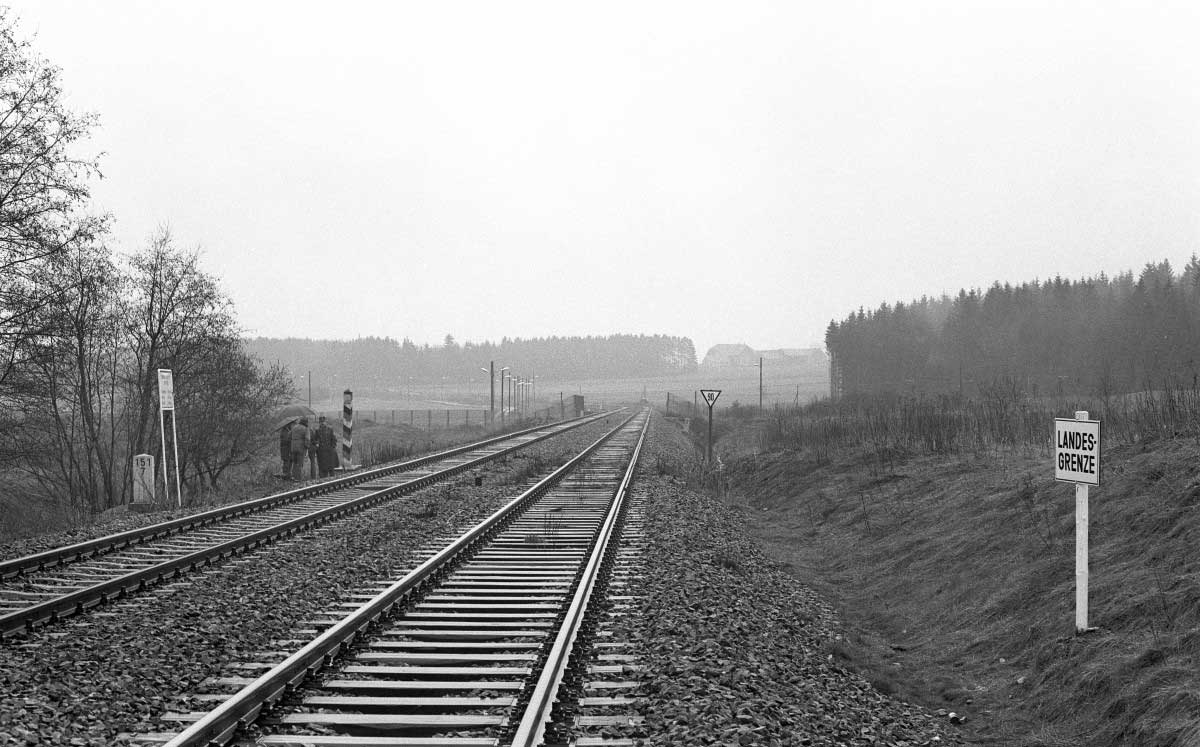 Grenzzaun und Grenze (Grenzpfahl vor der Lok)