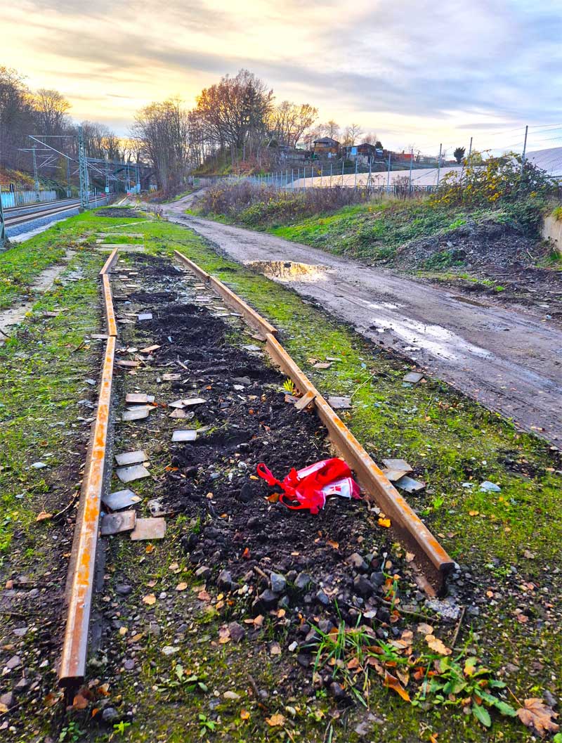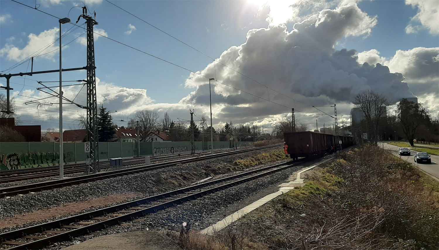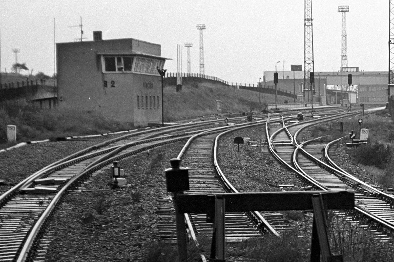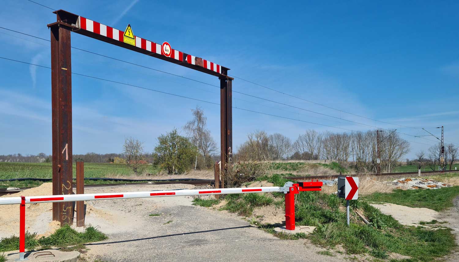 Grenzzaun und Grenze (Grenzpfahl vor der Lok)