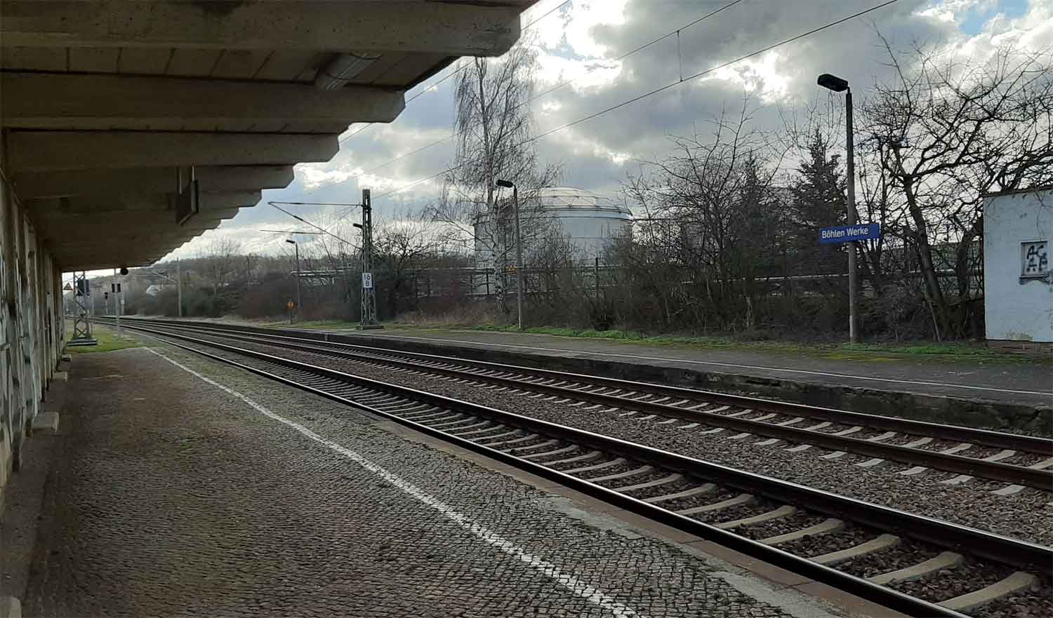 Böhlen (b. Leipzig) | 14,58 | auch Angabe 14,68 km 0,0 der Strecke Böhlen (b. Leipzig) - Espenhain (BE) |