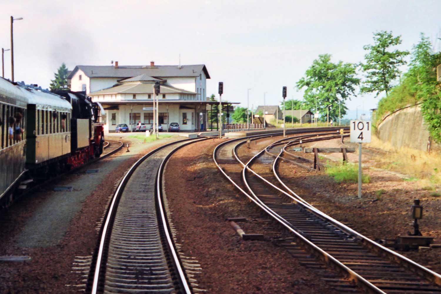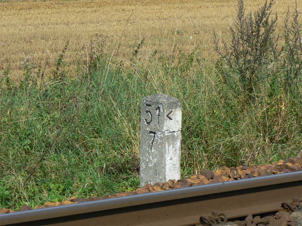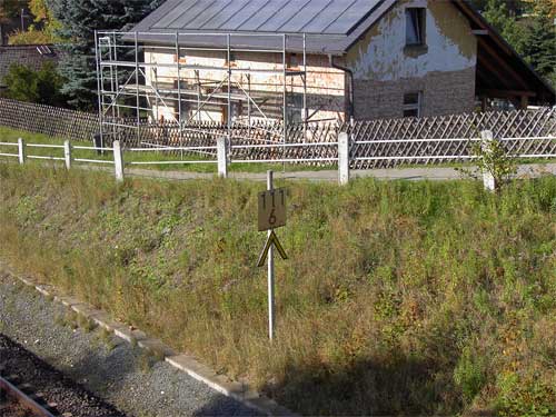 km 1,0 gehört zur Strecke Hof Hbf 0,0 - Naila 18,75 - Marxgrün 22,93 - Bad Steben 26,99