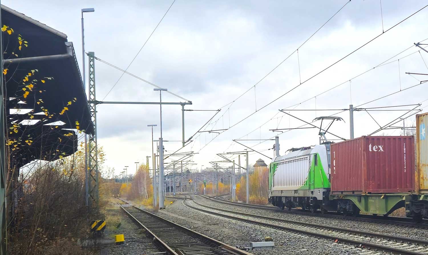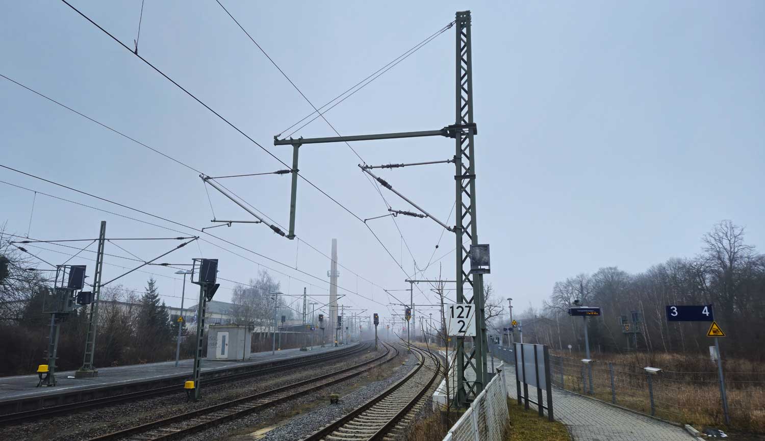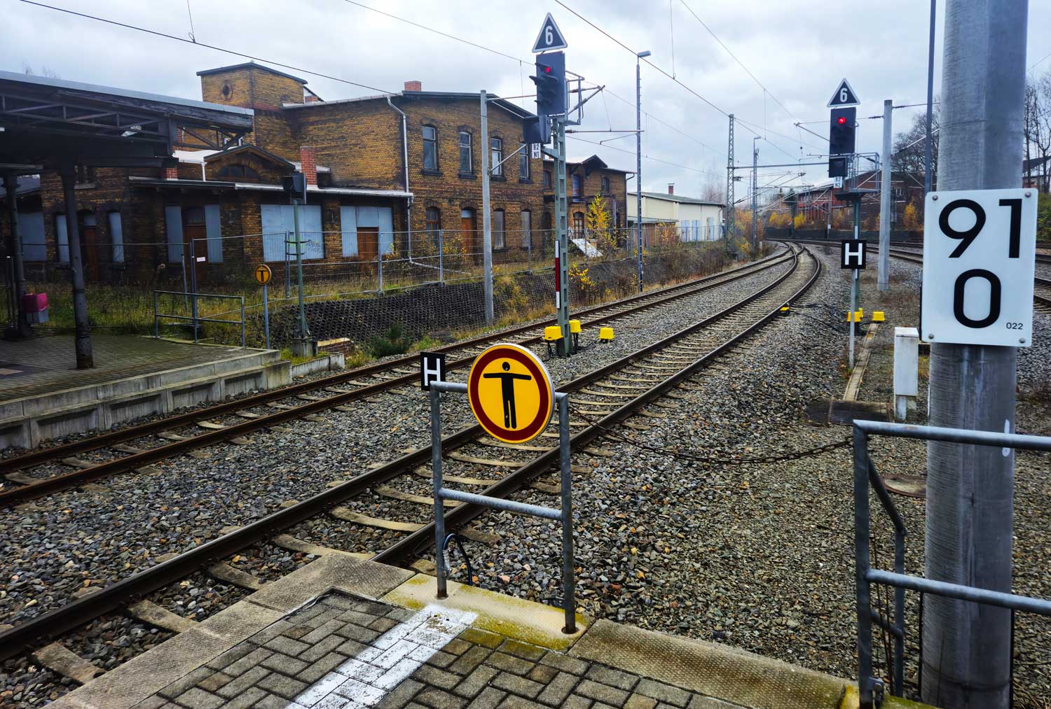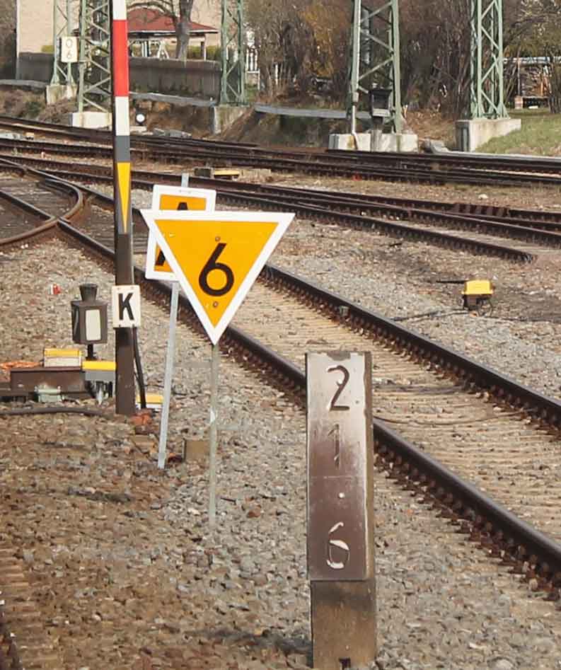 km 163,8 (vor dem Oberleitungsmast) in Hof Hbf