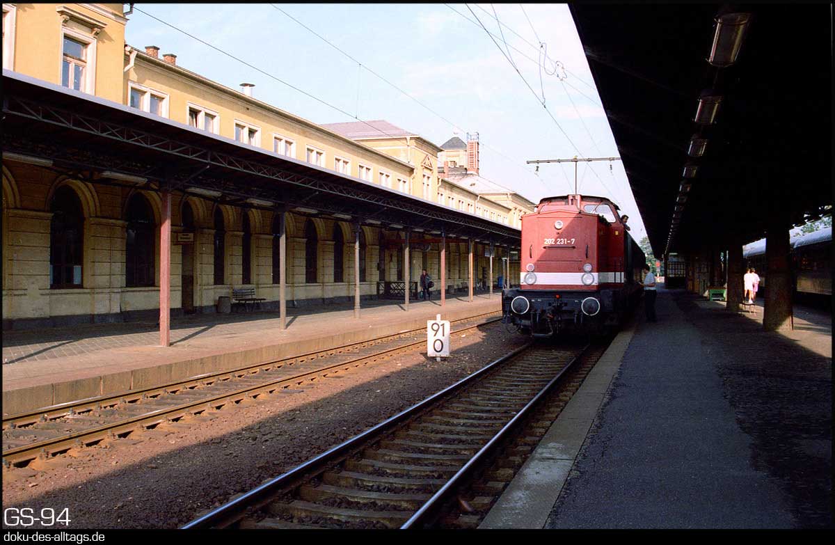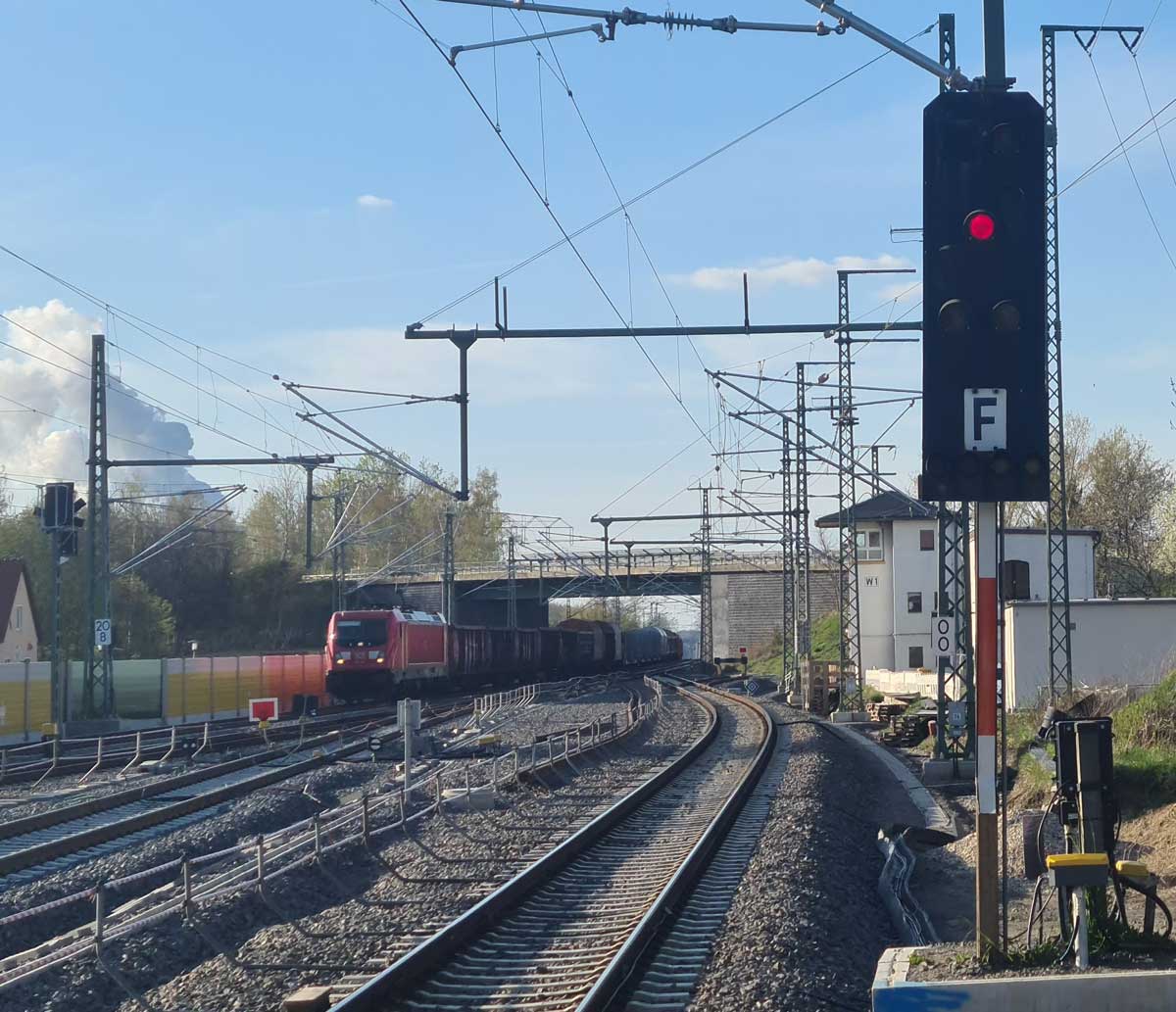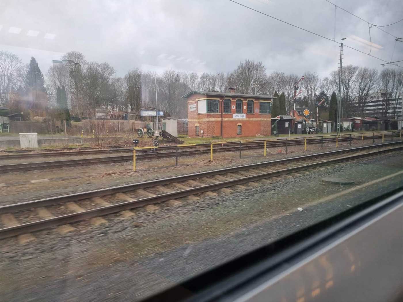 km 163,8 (vor dem Oberleitungsmast) in Hof Hbf