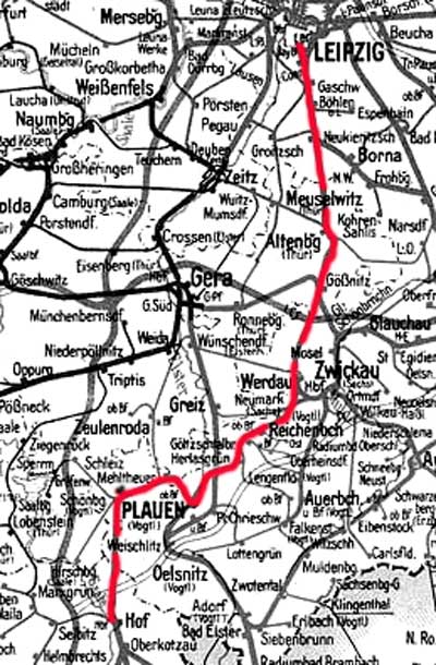 Leipzig Bayerischer Bf 0,12 - Altenburg Hbf 38,63 - Werdau 73,81 - Reichenbach (Vogtl) 90,96 -