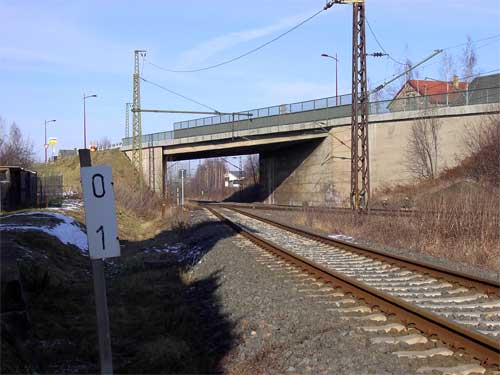 km 133,7 in Schönberg (Vogtl) - Blick Richtung Hof