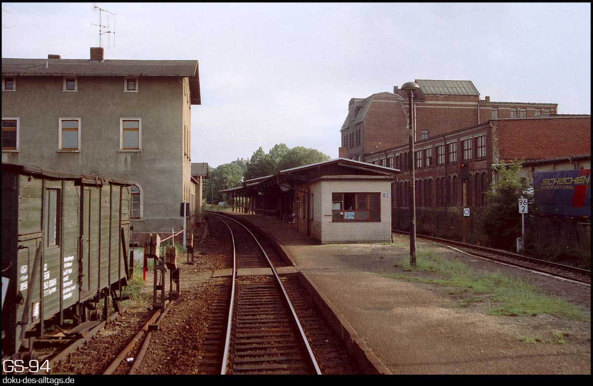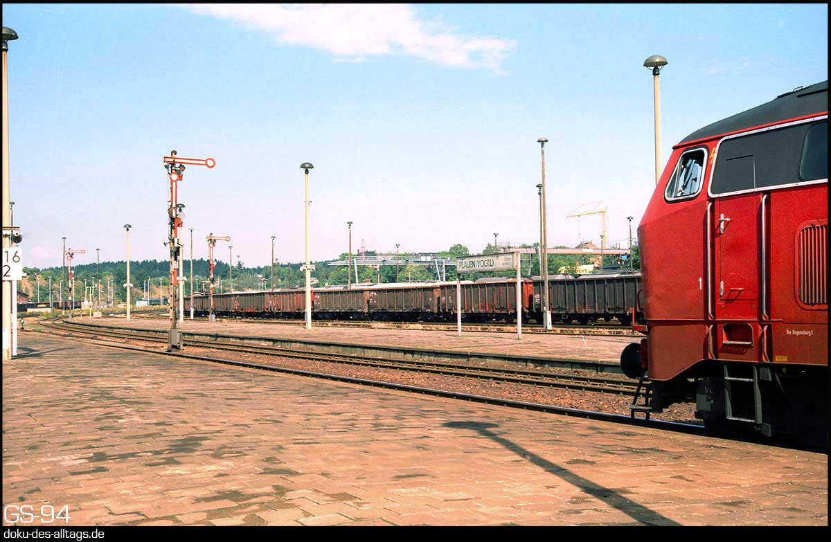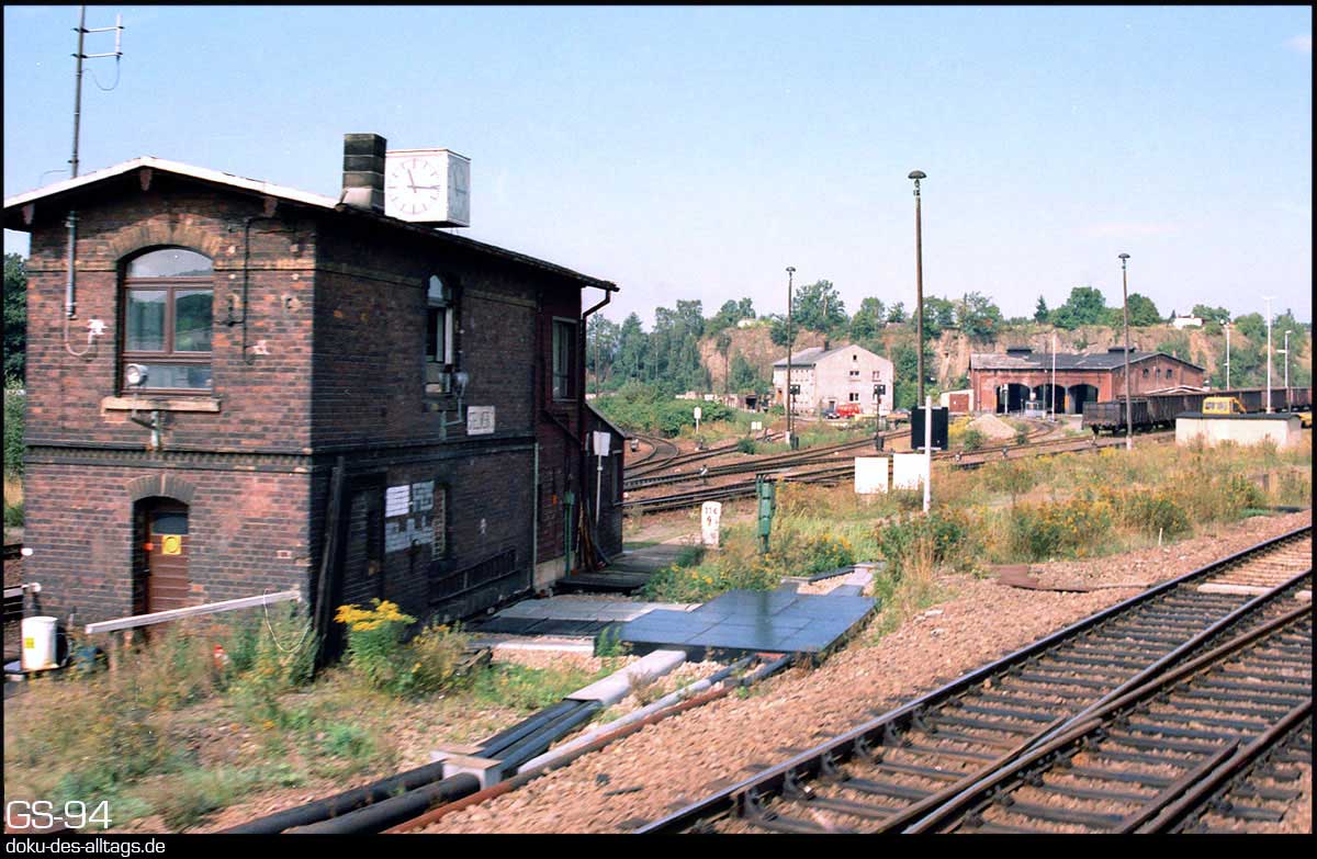 Gößnitz | 53,624 | km 12,37 der Strecke Glauchau-Schönbörnchen - Gößnitz (SG) km -0,374 der Strecke Gößnitz -0,374 - Gera Hbf 34,68 (GGa) [nach 1945 verkürzt bis Gera Süd] bis 1968 km -0,374 der Strecke Gößnitz -0,374 - Gera Süd 33,48 (ab 1968 wegen Umverlegung im Raum Ronneburg) |