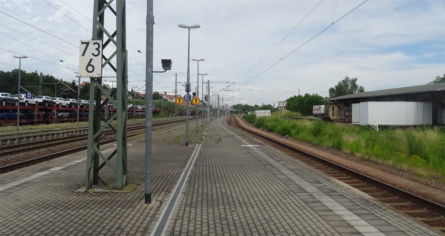 Abzw. Werdau Bogendreieck (Neumarker Spitze) | 75,90 | km 136,23 der Strecke Dresden Hbf -0,048 - Chemnitz Hbf 79,73 - Zwickau Hbf 128,35 - Abzw. Werdau Bogendreieck (Neumarker Spitze) 136,23 |