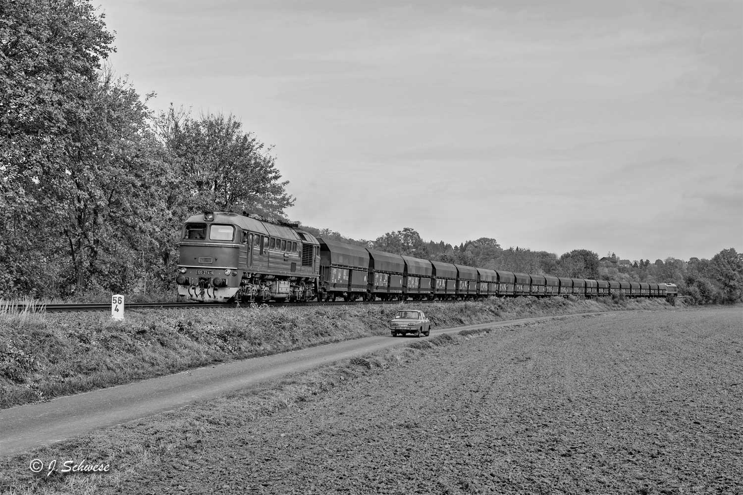 Fotogüterzug mit der 65 1049 bei km 63,1 (Caaschwitz) - Blick Richtung Leipzig