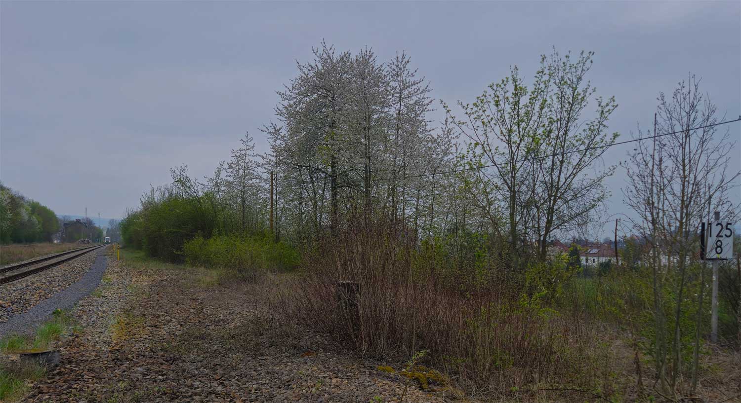 km 123,0 (Stein und Tafel) in Pößneck ob Bf - Blick Richtung Leipzig