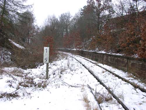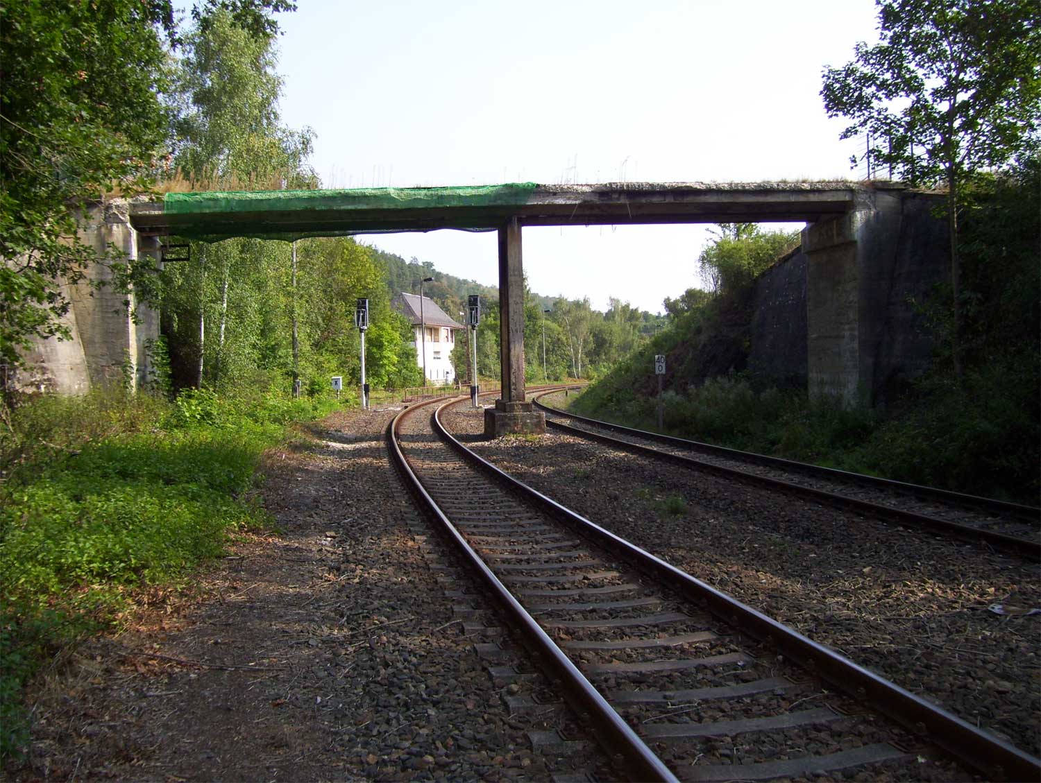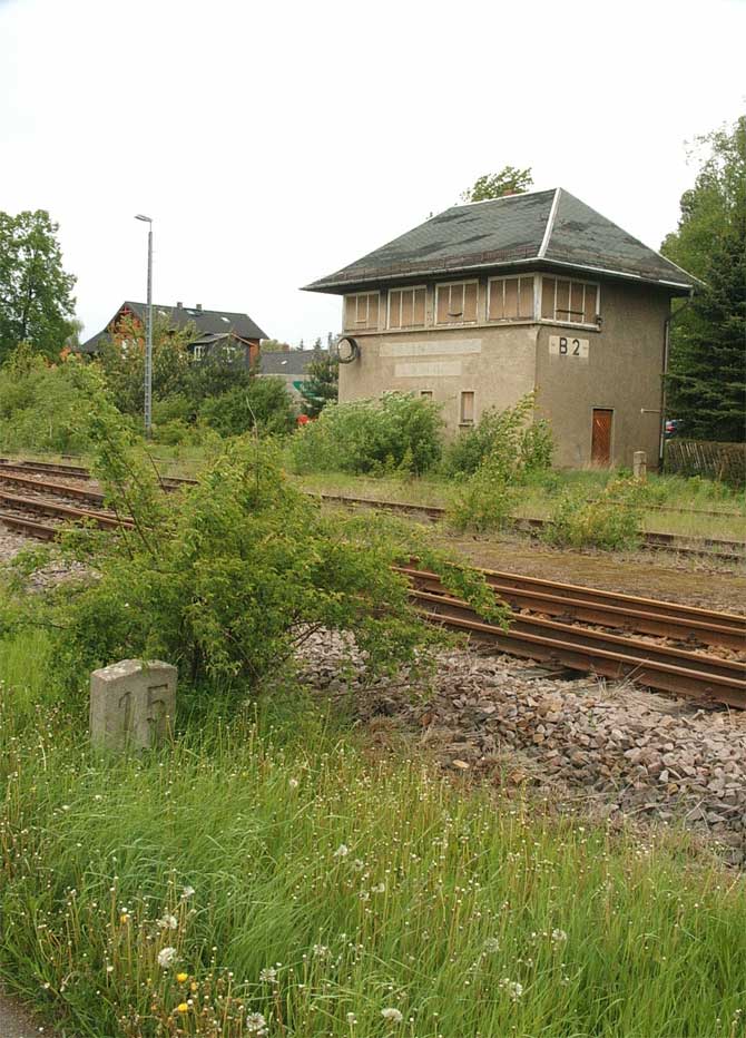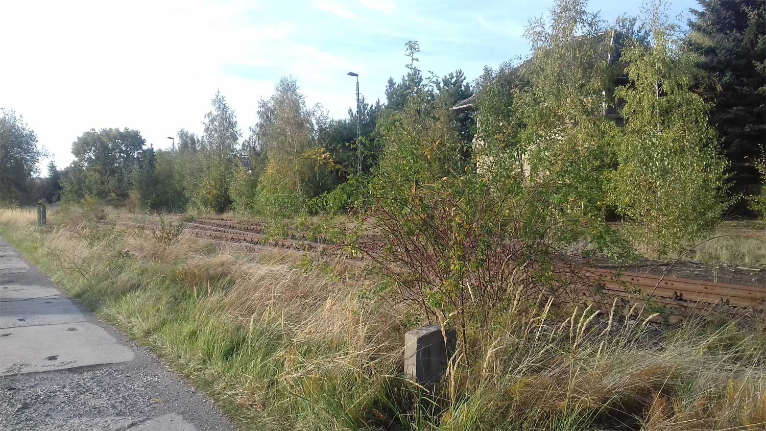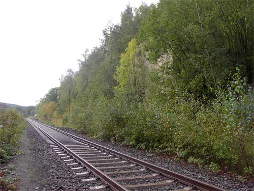 Blick Ri Hp Schüptitz Rechts befand sich der Anschluss einer Diabas (Grünstein)-Verladung (August 2005) |