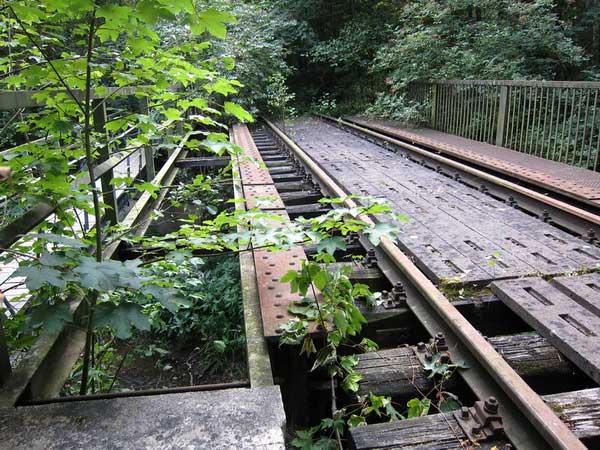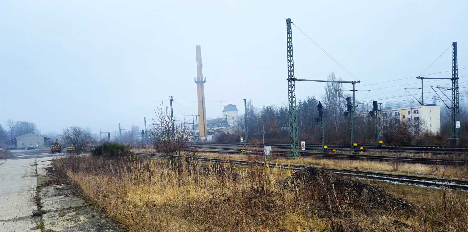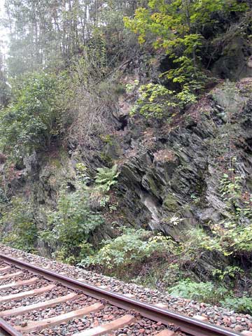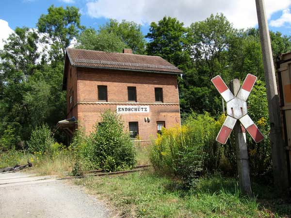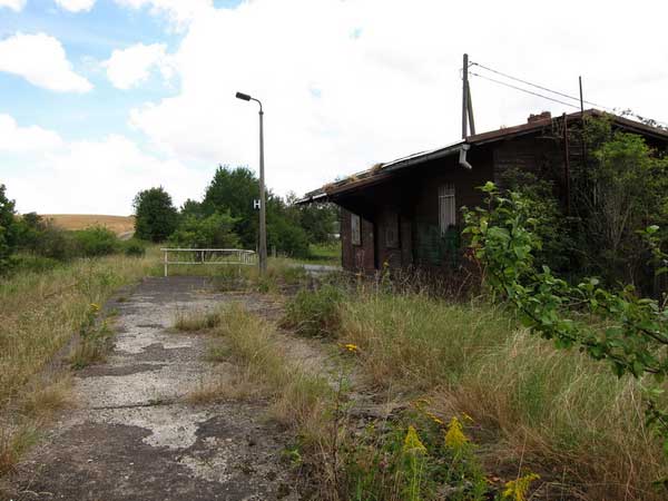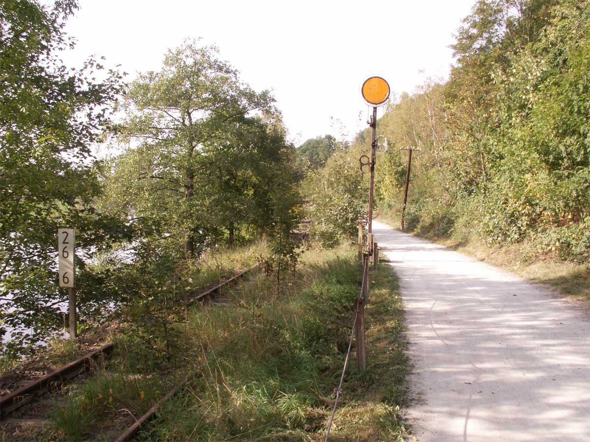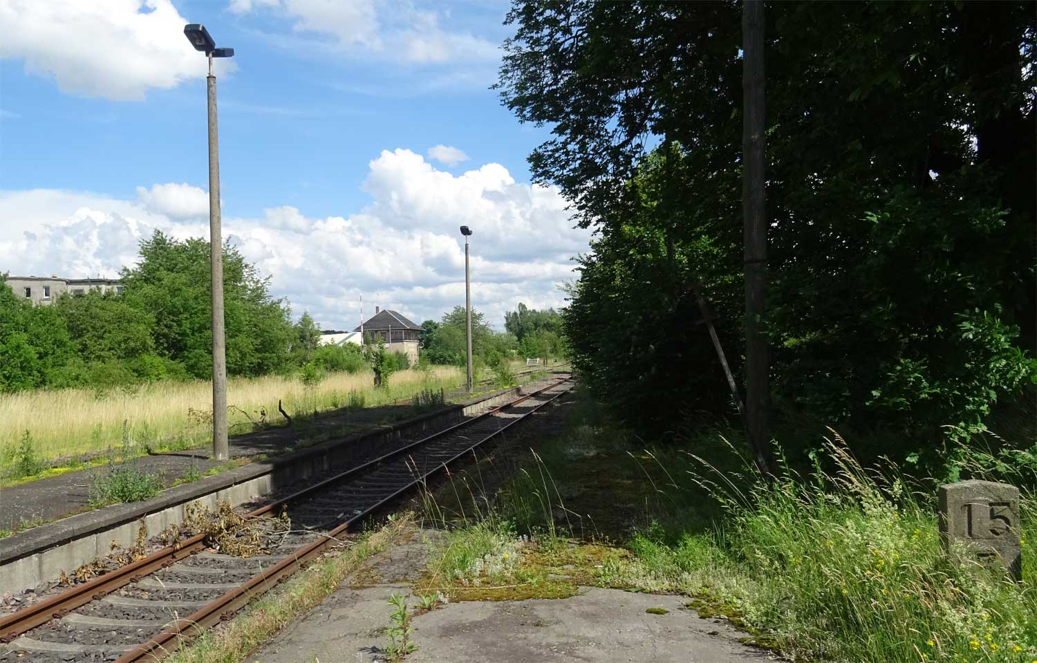 Blick Ri Hp Schüptitz Rechts befand sich der Anschluss einer Diabas (Grünstein)-Verladung (August 2005) |