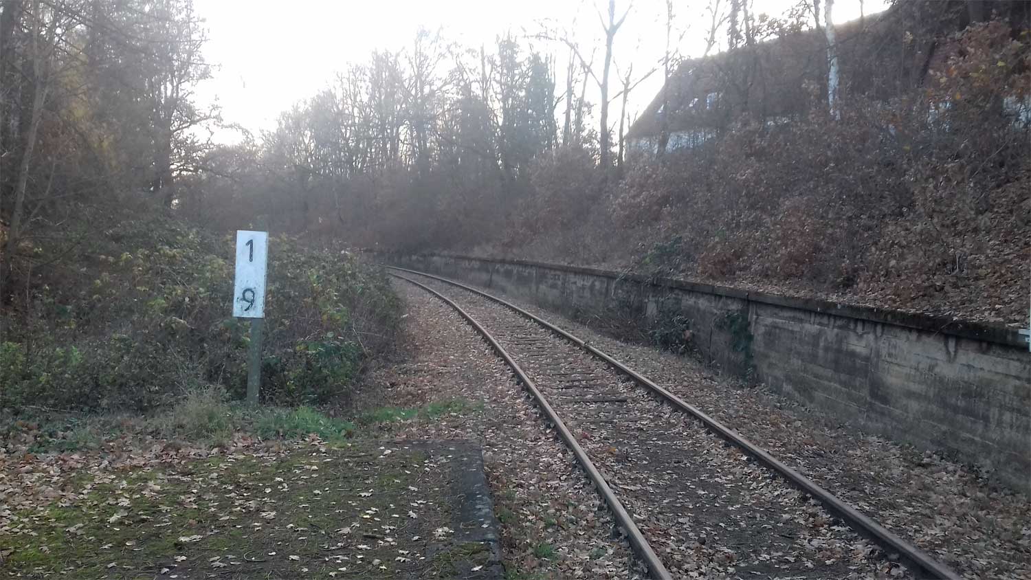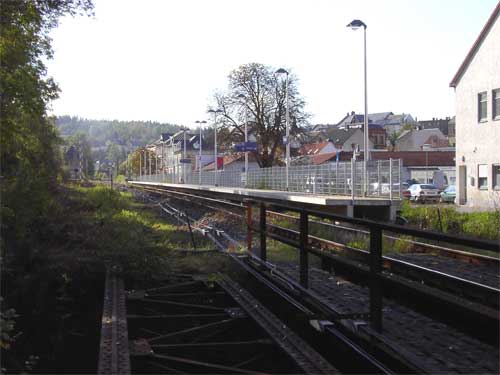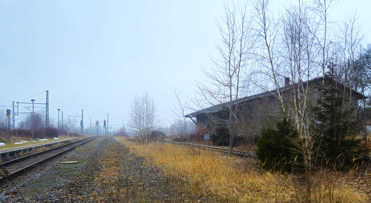 1900 wurde die Strecke umverlegt. Sie verlässt den Bf in nördlicher Richtung und