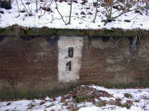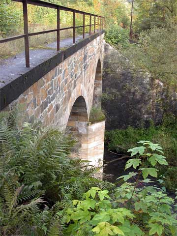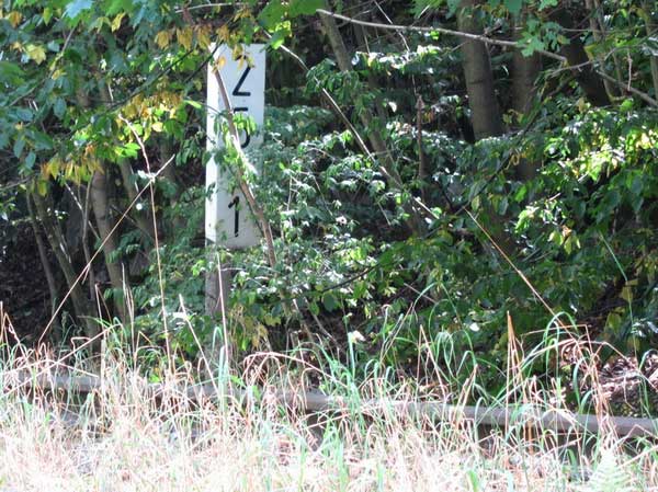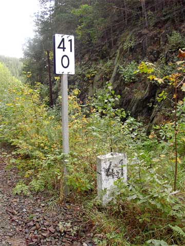 km 41,2 und Brücke über die Weida Man beachte auch die Form des Pfeils für die Richtung zum nächsten Fernsprecher. (August 2005) |
