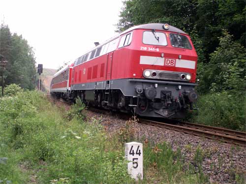 Vierländerexpress auf seiner Fahrt nach Leipzig bei km 44,5 (Juni 2006) |
