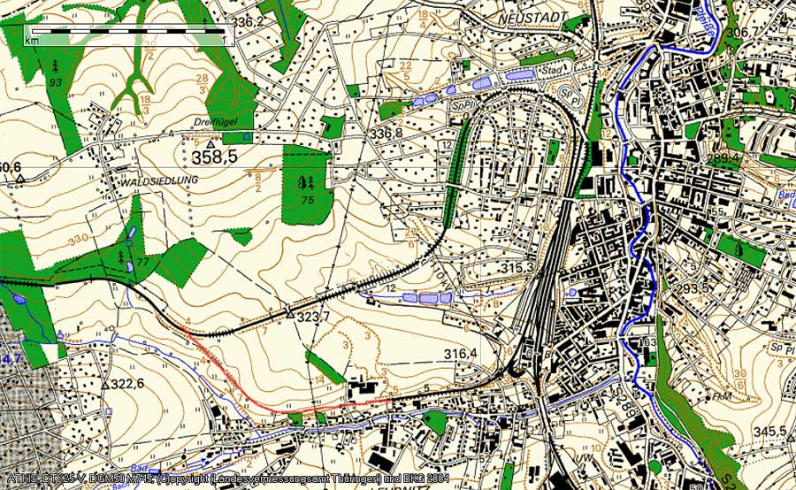 km 37,7 zwischen Weida Altstadt und Loitsch-Hohenleuben - Blick Richtung Weida - Werdau