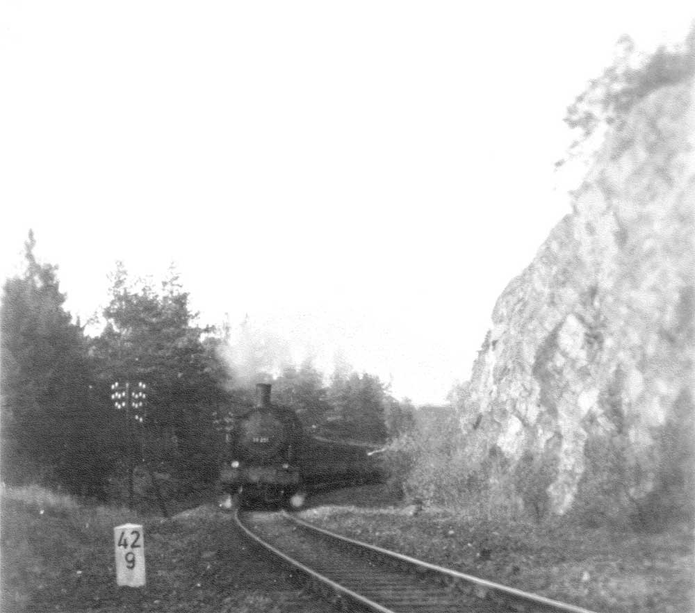 ![]() km 42,9 am Roten Felsen im Jahr 1953 Foto: Dr.-Ing. S.Wetzel alias Analemma at de.wikipedia; CC-BY-SA |
