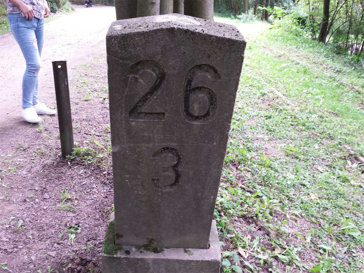 Hektometerstein 522 in einem Garten nahe (August 2003) |
