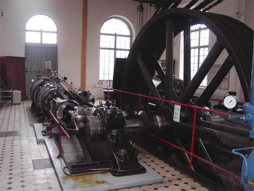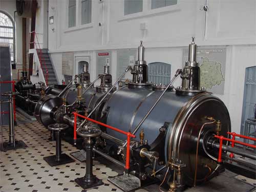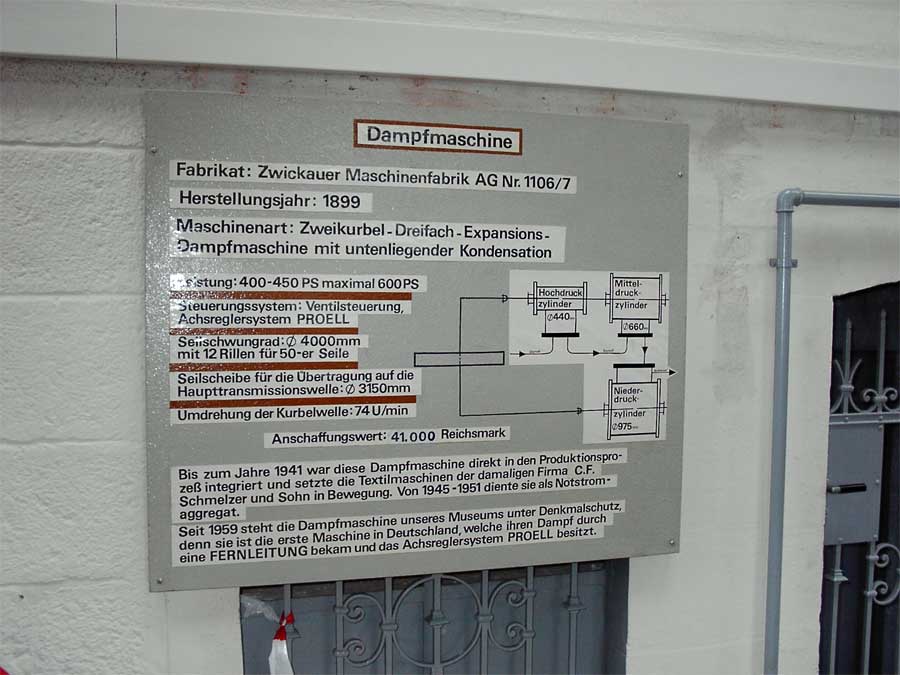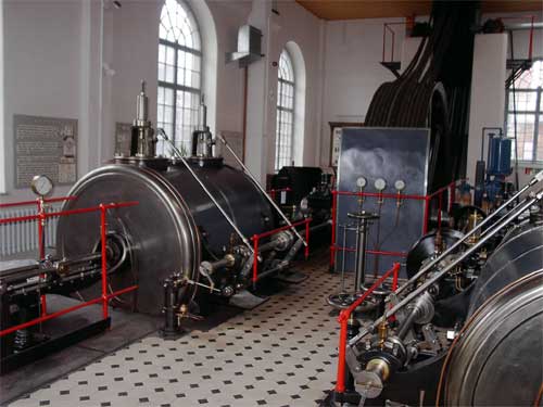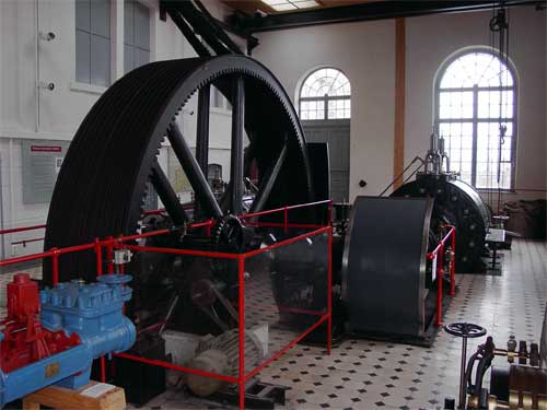 Schwungrad, Hochdruckzylinder und dahinter Mitteldruckzylinder |