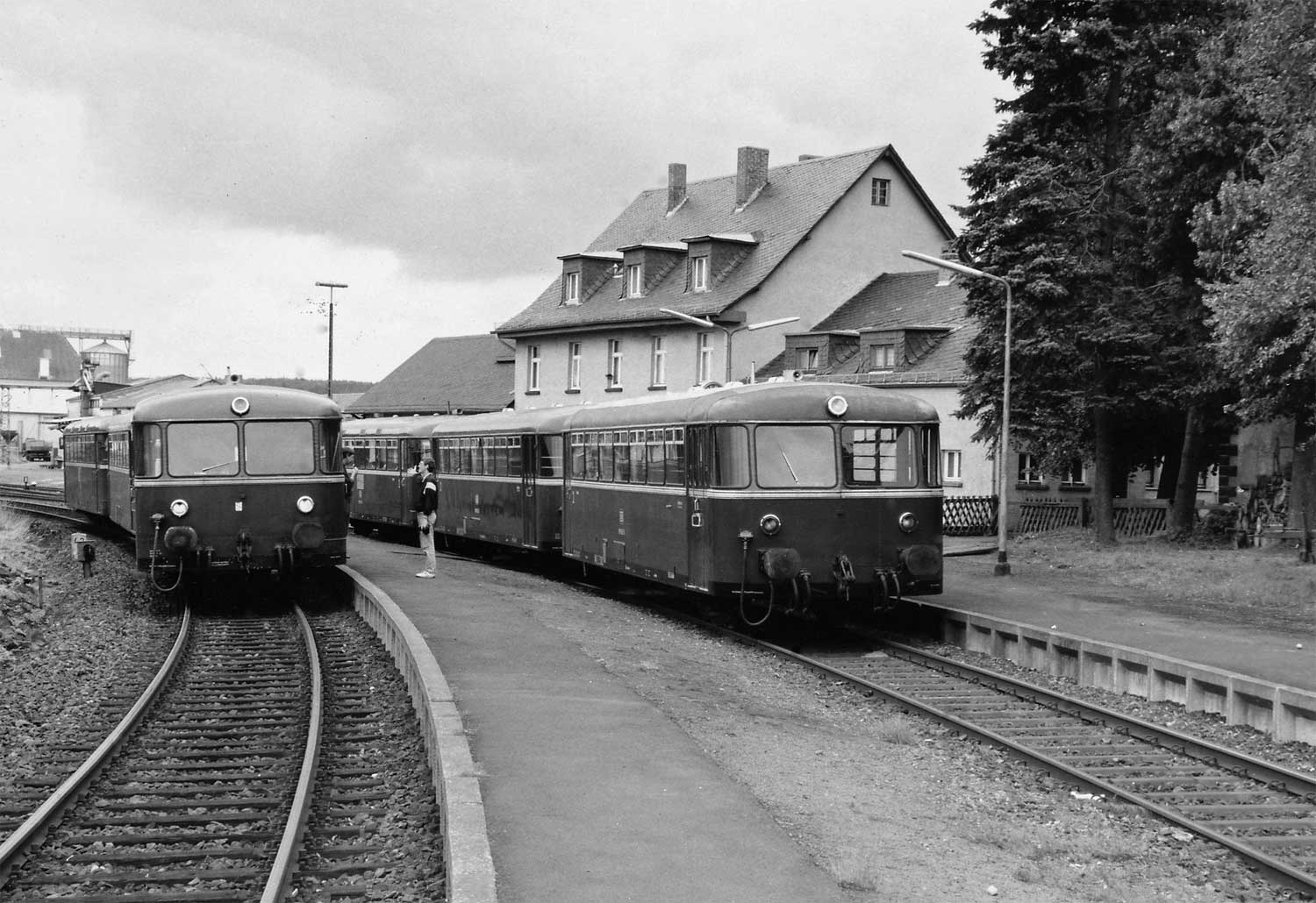 VEB V60 1140 (365 140-3); AKE Rheingoldwagen; VEB V60 1184 (361 518-4); KAF Falkenhahn Turmtriebwagen 636 011-5